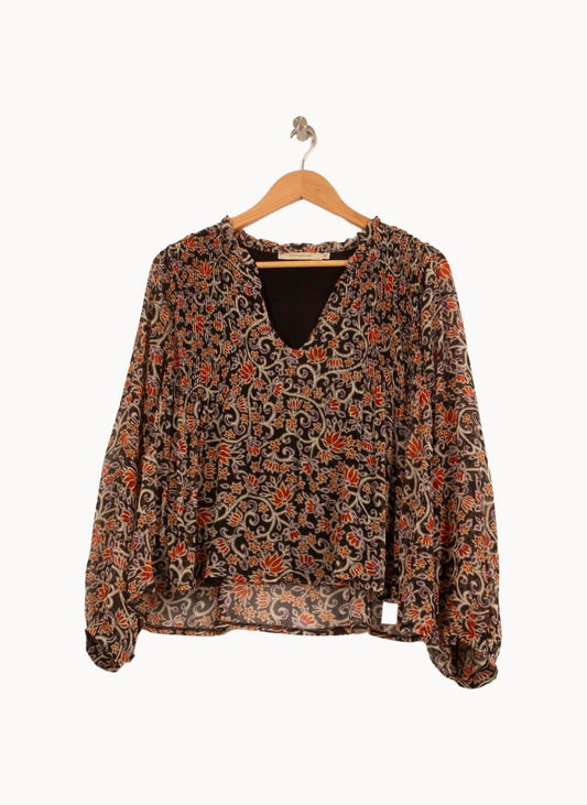 Blouse Noire et Multicolore - Taille M/38