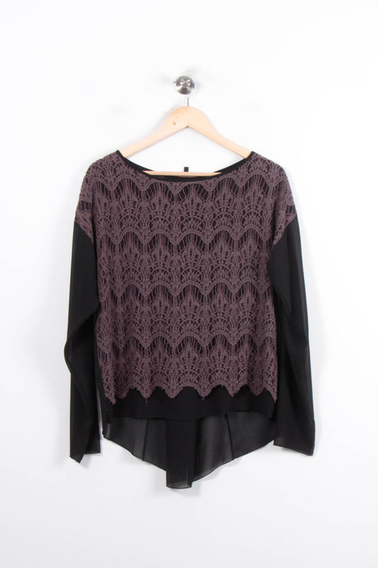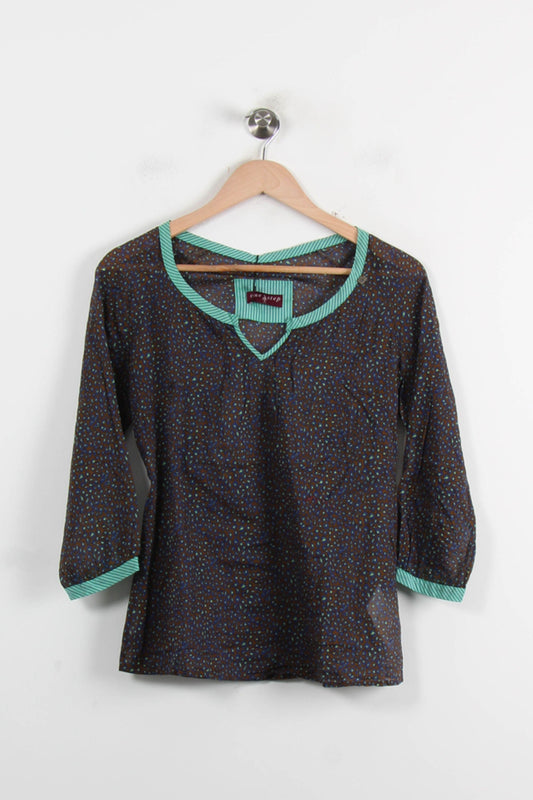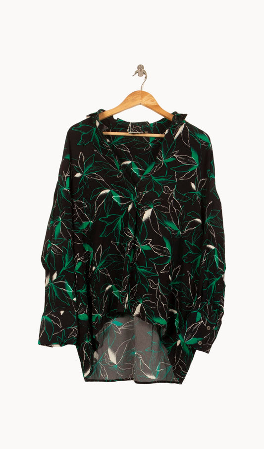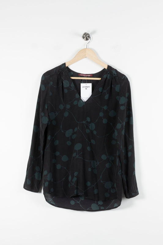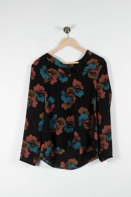 Blouse Noire et Rouge Fleurie - Taille S/36