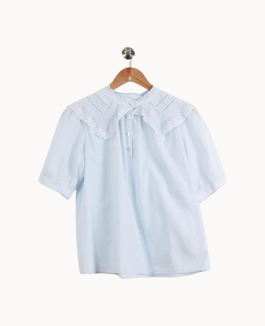 Blouse Bleue à Carreaux Blancs - Taille TU