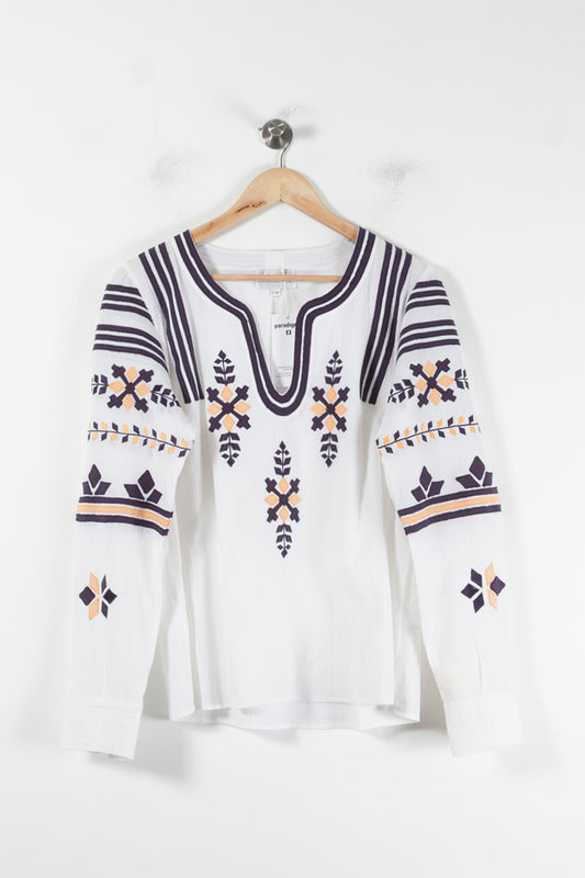 Blouse Brodée Blanche et Noire - Taille XL/42