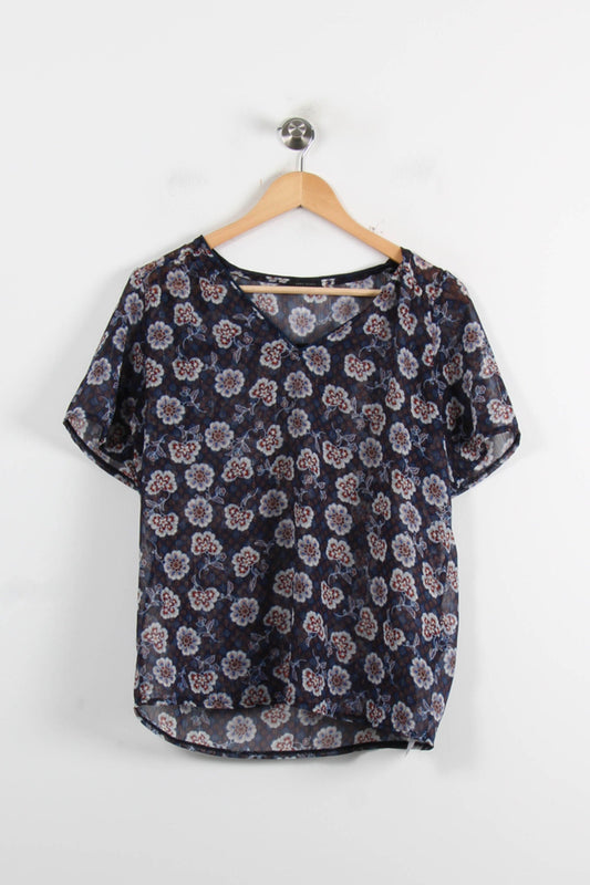 Blouse Fleurie Bleue et Blanche - Taille M/38