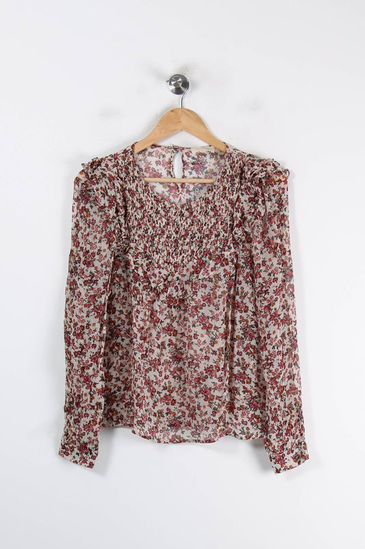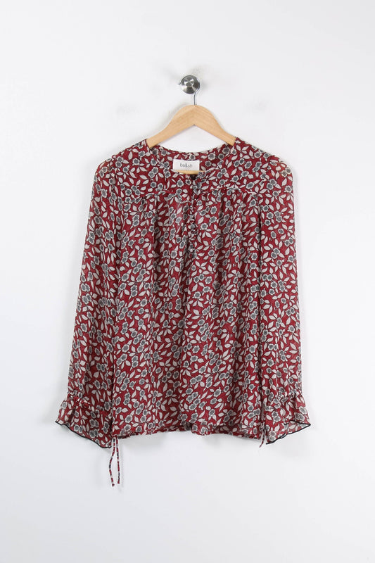 Blouse Fleurie Bordeaux et Beige - Taille M/38