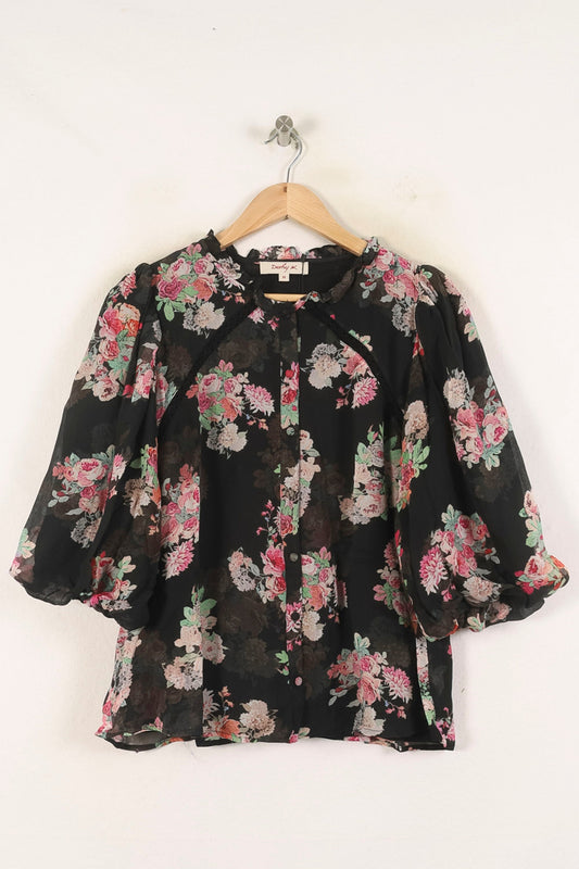 Blouse Fleurie Noire et Rose - Taille M/38