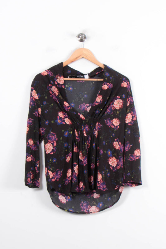 Blouse Fleurie Noire et Rose - Taille S/36
