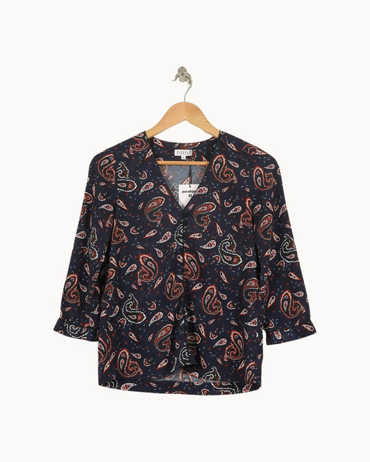 Blouse Bleu Foncé et Marron - Taille M/38