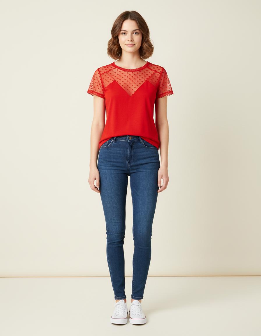 Tee-Shirt Avec Incrustation Plumetis Rouge - Taille S/36
