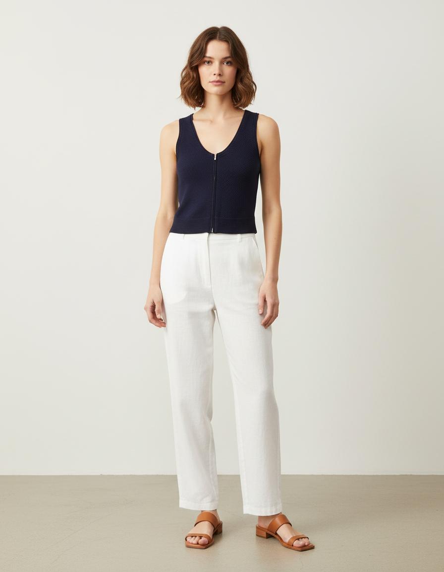 • Confectionnée dans une maille côtelée à la fois souple et gainante, la brassière est pourvue d'un décolleté v, prolongé d'un zip sur le devant.