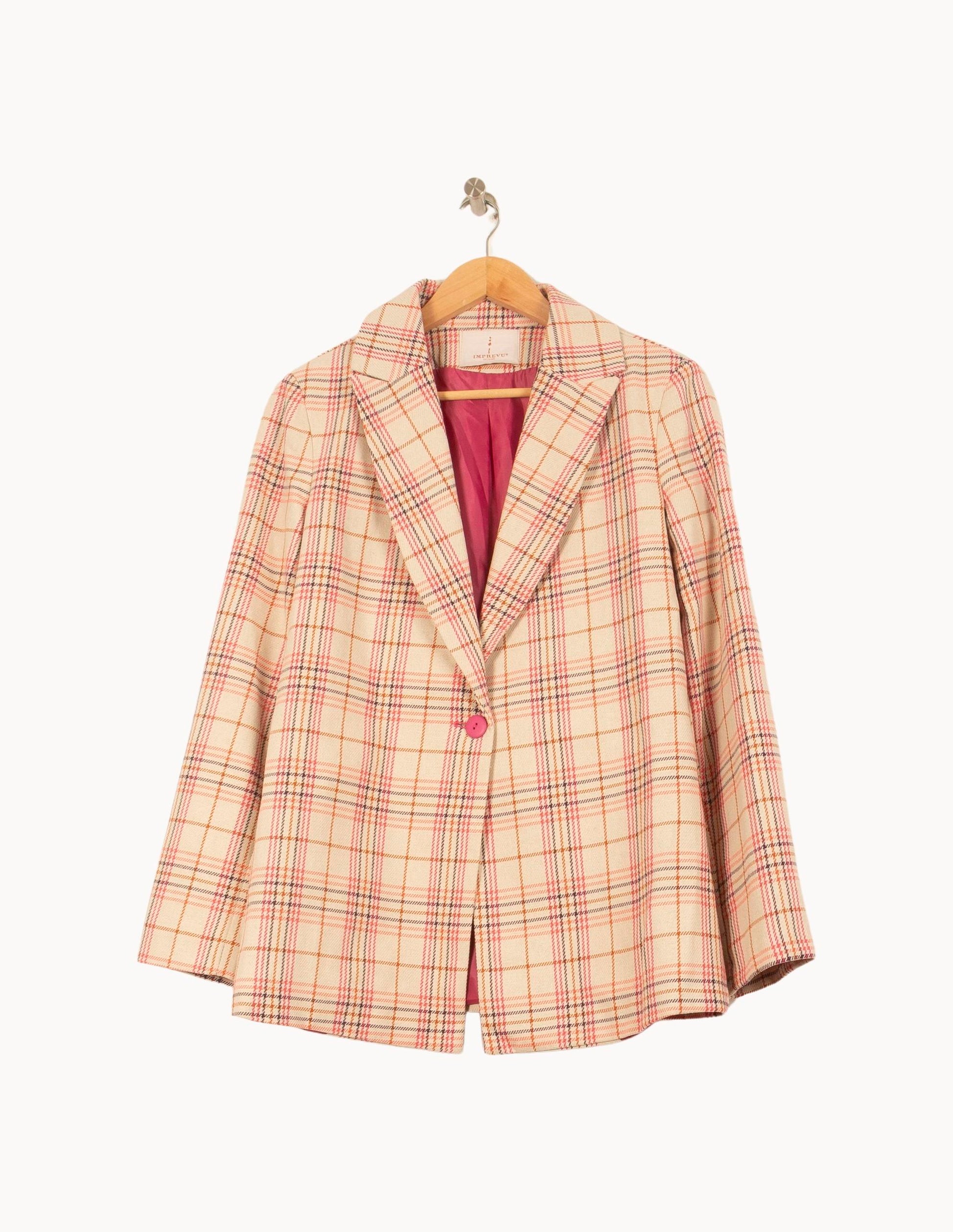 Blazer Beige à Carreaux Roses et Marron - Taille S/36