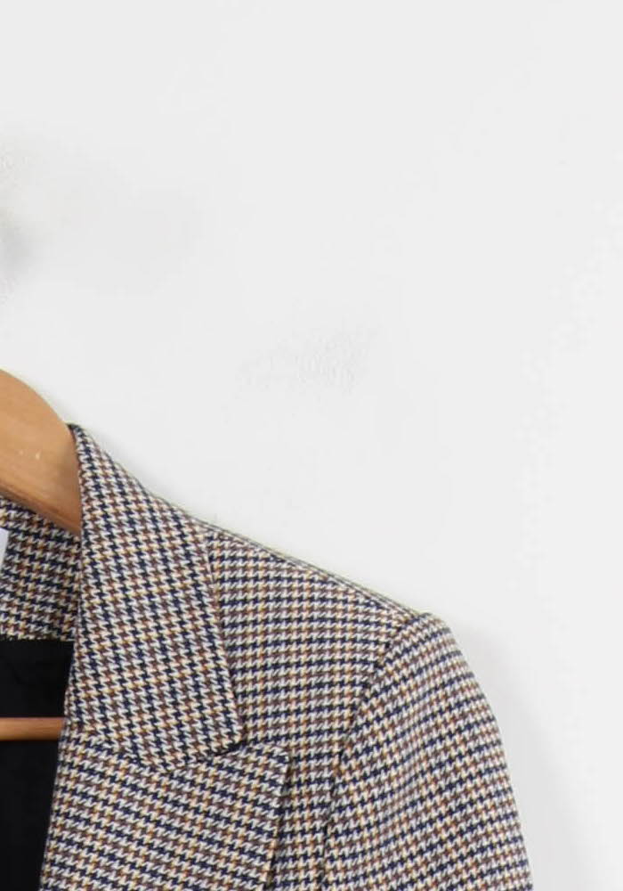 Veste blazer à carreaux Claudie Pierlot, taille S/36, en coloris beige, idéale pour une allure élégante et intemporelle. Ce modèle présente une matière à motif pied-de-poule structuré, doublée, avec un bouton frontal et deux poches à rabat, contribuant à son style sophistiqué et ses finitions raffinées. Parfait pour une journée de travail ou un rendez-vous professionnel où l’on souhaite allier confort et élégance.