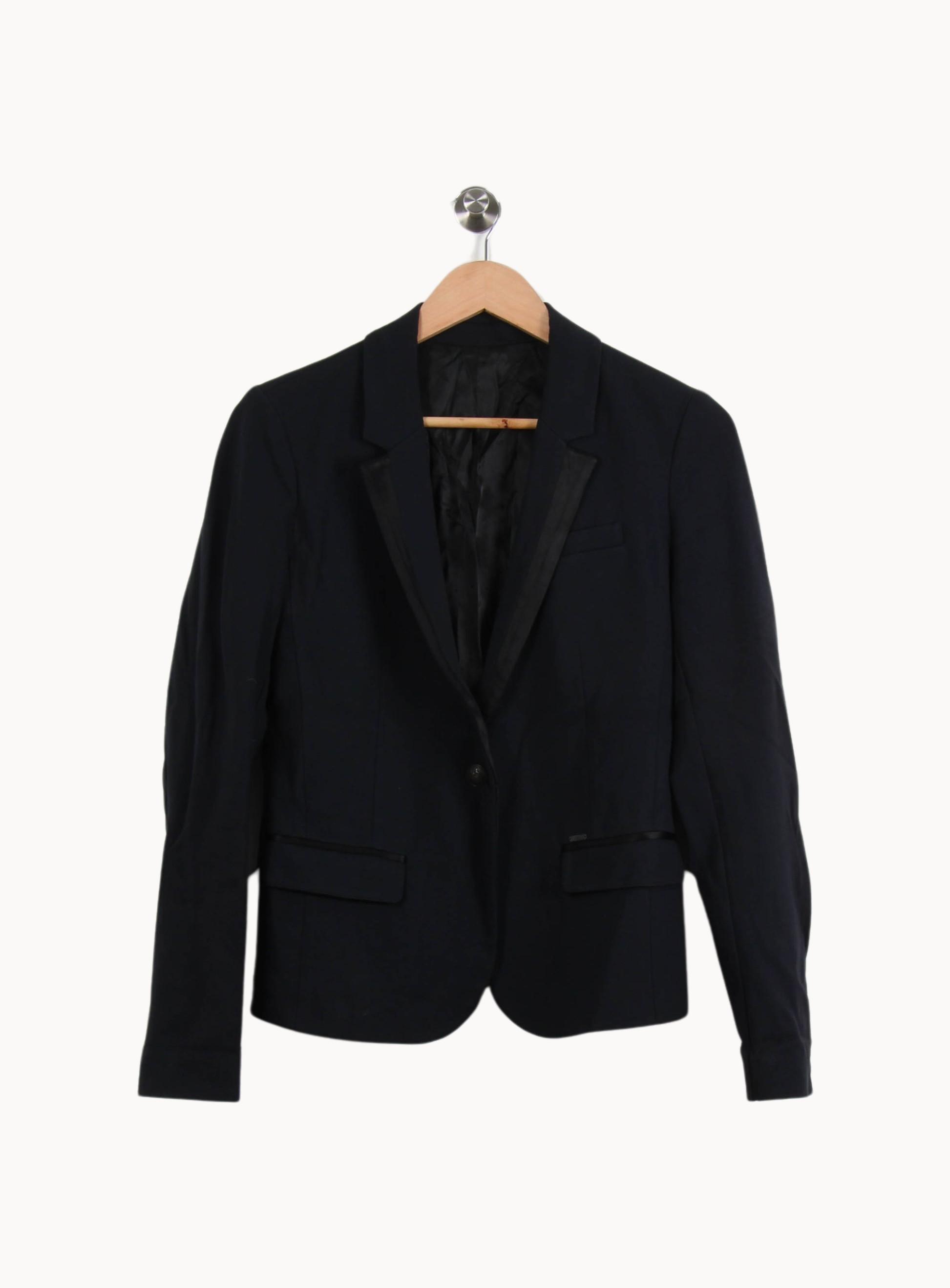 Veste blazer bleu marine IKKS, taille L/40, au style intemporel et élégant. Confectionnée dans une matière unie, cette pièce se distingue par un col à revers satiné, une fermeture discrète à un bouton et des poches à rabat raffinées. Idéale pour rehausser une tenue de bureau ou apporter une touche sophistiquée à une soirée.