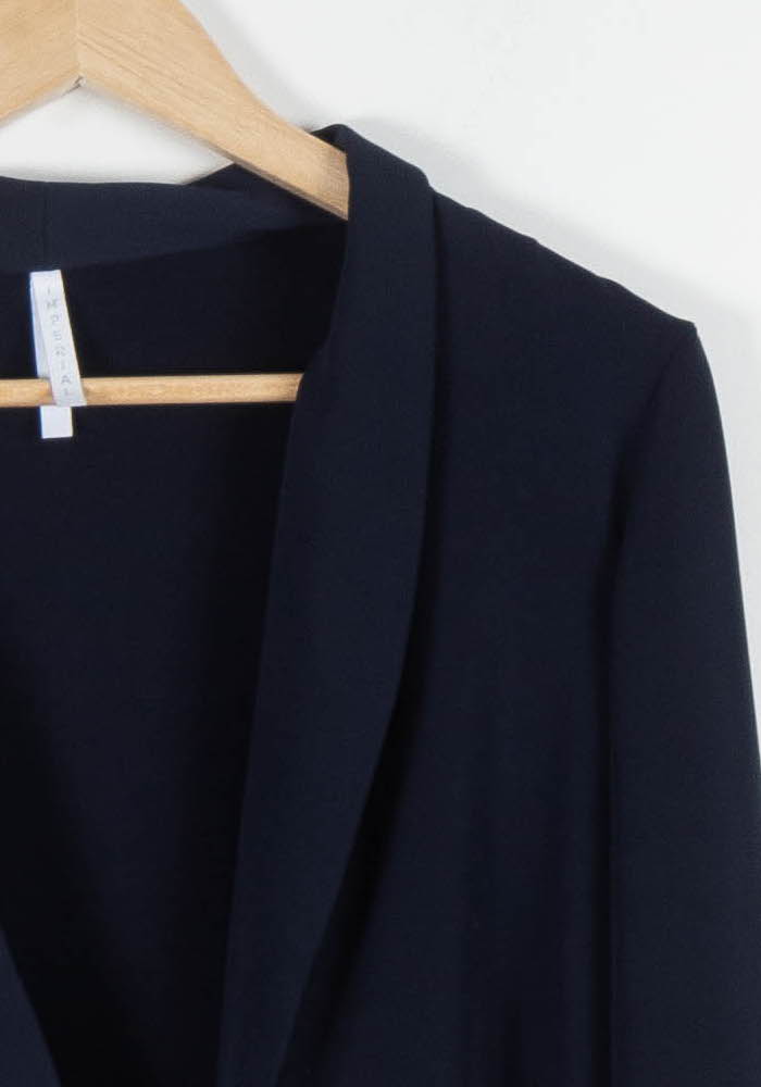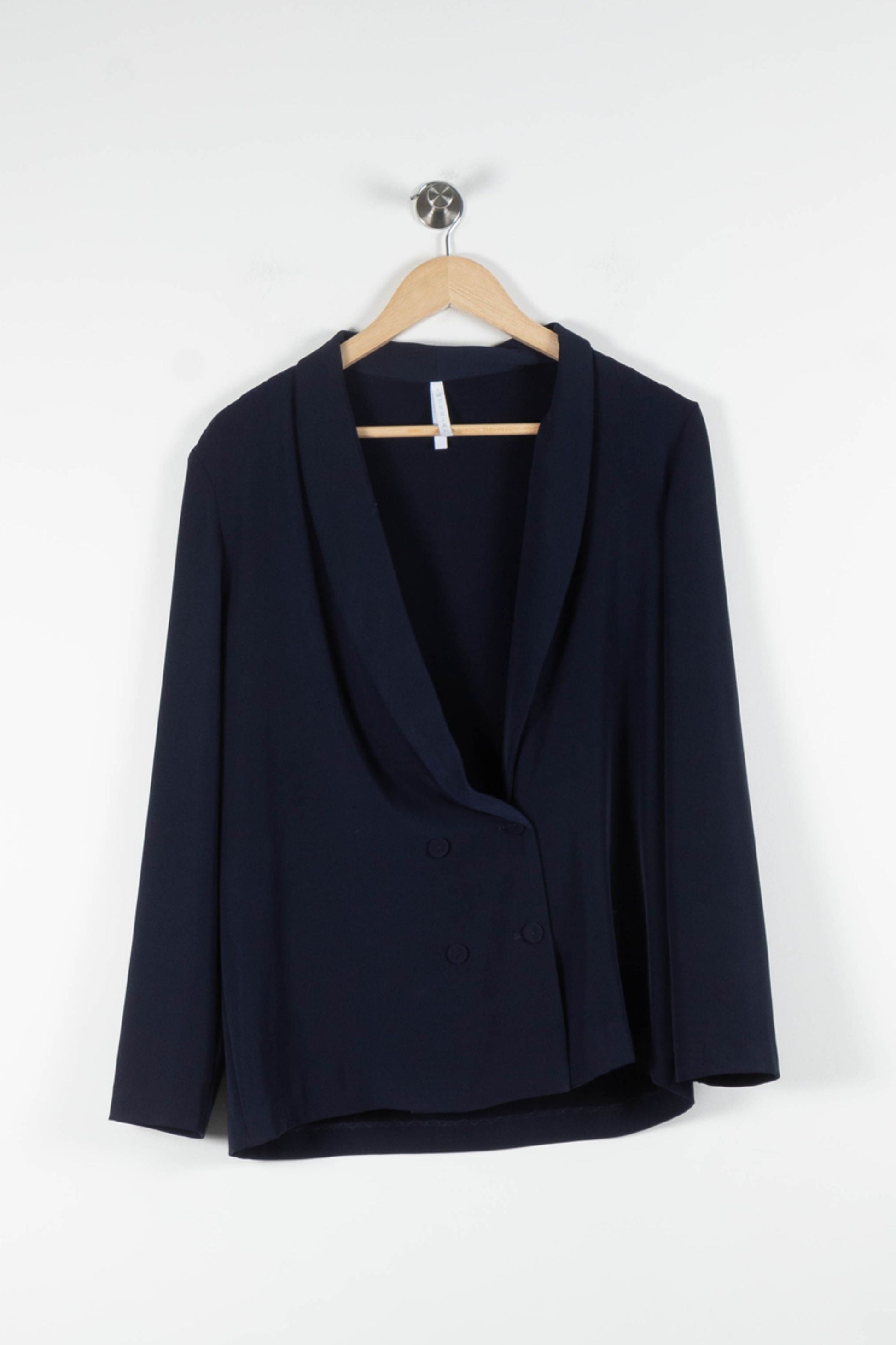 Veste bleue Imperial taille M/38, élégante et contemporaine, parfaite pour une allure chic et moderne. Confectionnée dans un tissu fluide, elle se distingue par son col châle et sa fermeture croisée à double boutonnage ton sur ton, offrant une finition sobre et raffinée. Idéale pour sublimer une tenue de bureau ou accompagner un dîner en ville.