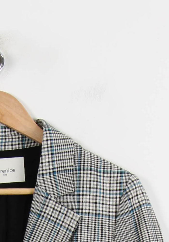 Veste à carreaux multicolore Bérénice, taille XS/34, parfaite pour un style sophistiqué et contemporain. Sa matière à motif prince-de-galles et ses larges poches plaquées apportent une touche graphique et moderne, soulignée par une coupe droite et deux boutons. Idéale pour une réunion professionnelle, elle complétera élégamment une tenue de bureau chic.