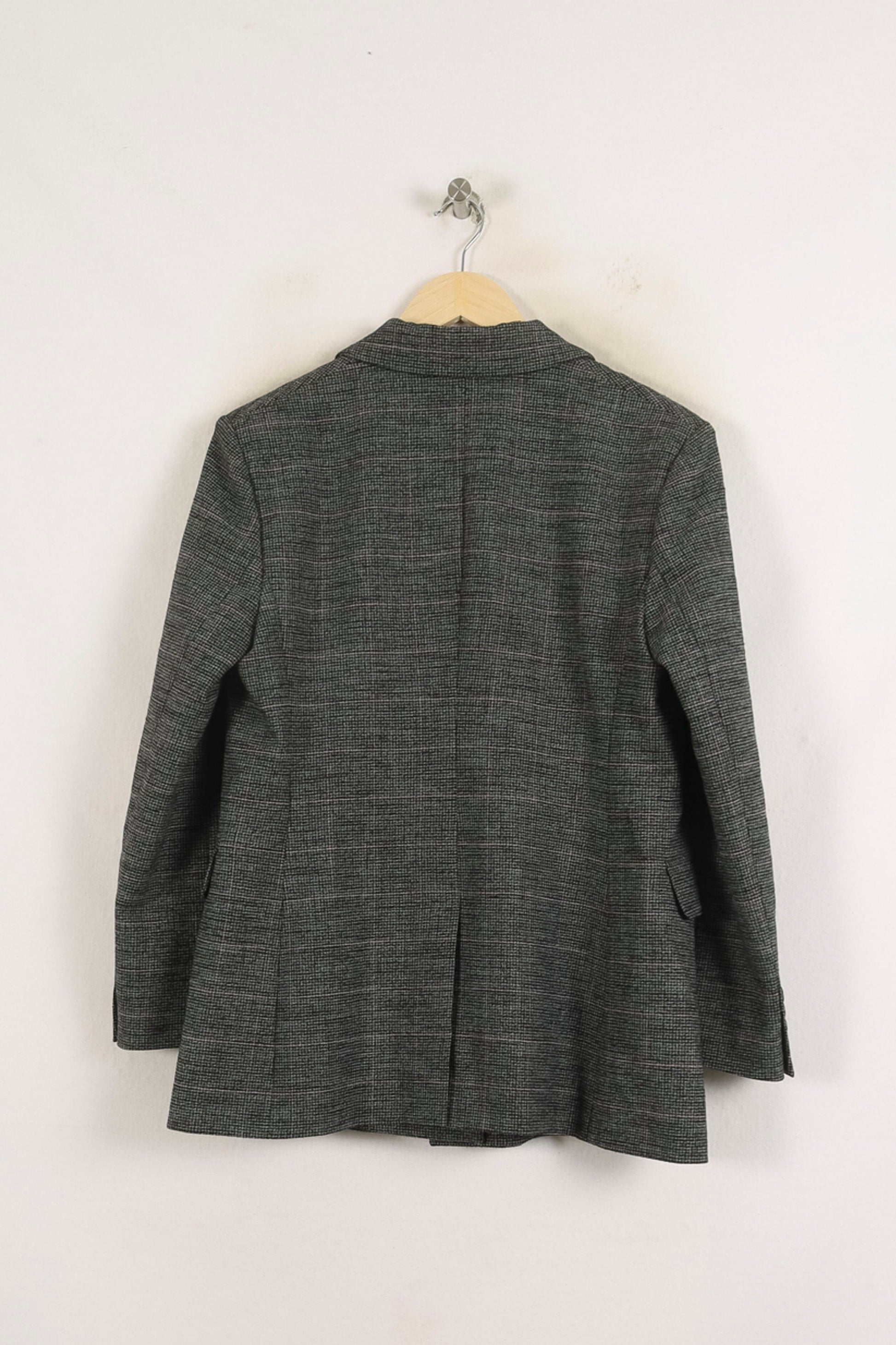 Veste à carreaux gris Maje taille XL/42, élégante et sophistiquée, parfaite pour affirmer son style en toute saison. Confectionnée dans un tissu à motif prince-de-galles, cette veste double boutonnage se distingue par sa structure soignée, son col à revers classique et ses deux poches à rabat sur le devant, pour une allure chic et intemporelle. Idéale pour un rendez-vous professionnel ou une sortie citadine raffinée.