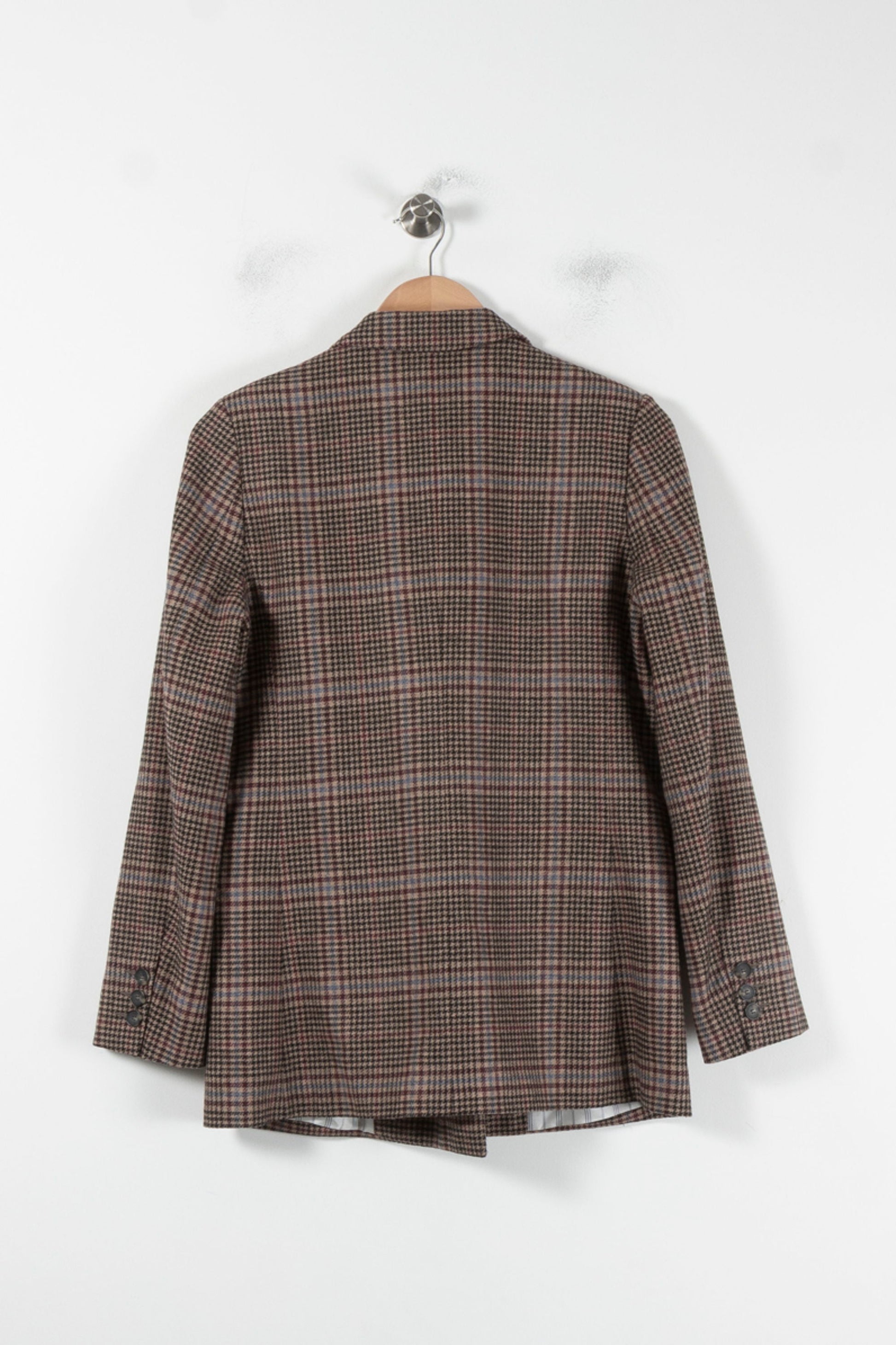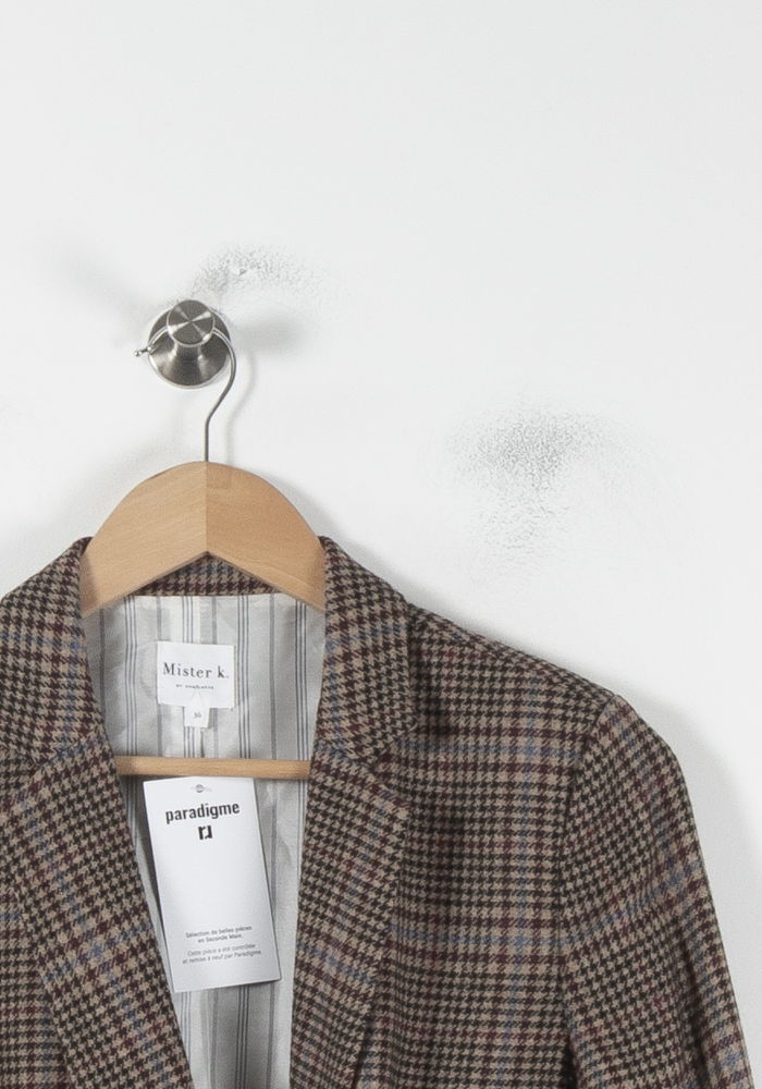 Veste à carreaux marron Mister K taille S/36, une pièce élégante et intemporelle idéale pour sublimer toutes vos tenues. Confectionnée avec soin en 75% polyester, 25% polyamide et 5% élasthanne, doublée d’un mélange de viscose et polyamide, elle offre un tombé structuré et confortable, rehaussé de finitions soignées et d’une coupe double boutonnage moderne. Parfaite pour une réunion professionnelle ou un déjeuner en ville, elle apporte une touche de sophistication à chaque occasion.