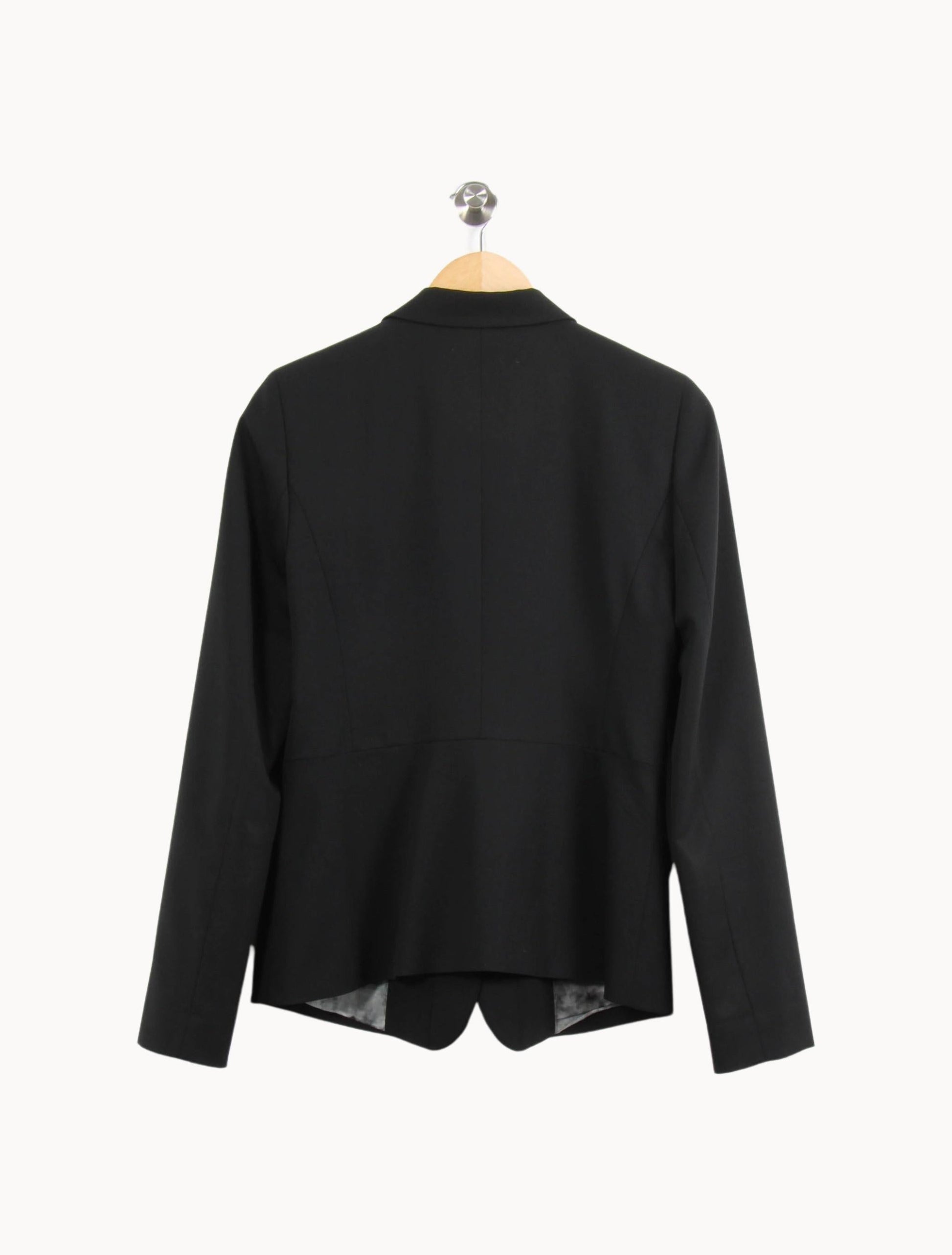 Veste noire IKKS femme, taille L/40 : une pièce élégante et intemporelle signée par la marque IKKS, idéale pour un style raffiné au quotidien. Confectionnée dans une matière lisse, avec une doublure graphique originale et une coupe structurée, cette veste se distingue par ses détails soignés comme le revers classique et les poches à rabat. Parfaite pour un rendez-vous professionnel ou une réunion formelle, elle assure allure et confiance en toute circonstance.