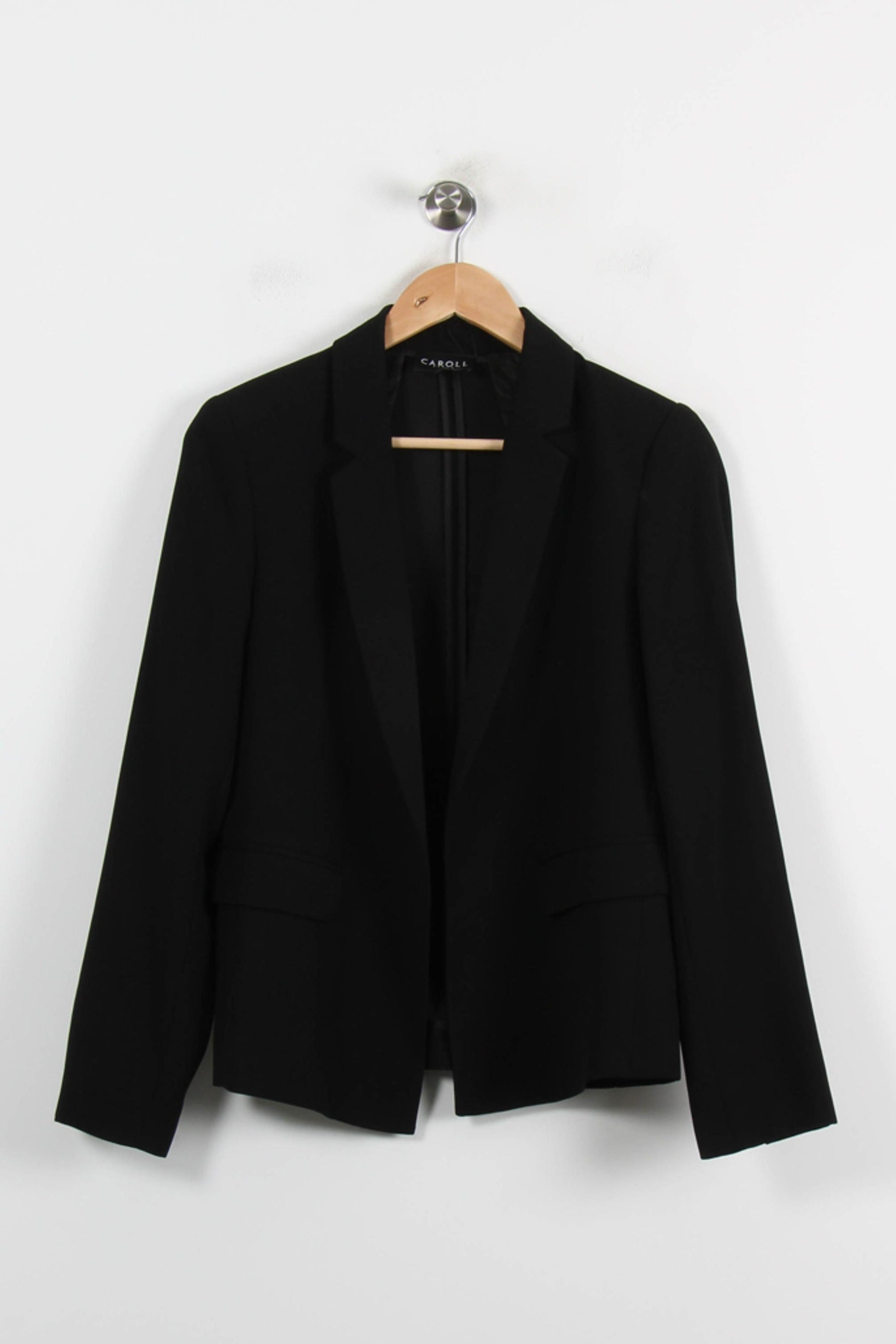 Veste noire Caroll taille M/38, élégante et intemporelle, idéale pour rehausser toutes les silhouettes. Confectionnée dans une matière fluide de qualité, cette veste se distingue par sa coupe structurée, son col à revers classique et ses poches à rabat qui lui confèrent une allure sophistiquée. Parfaite pour accompagner vos tenues lors d’un entretien professionnel ou d’une réunion importante.