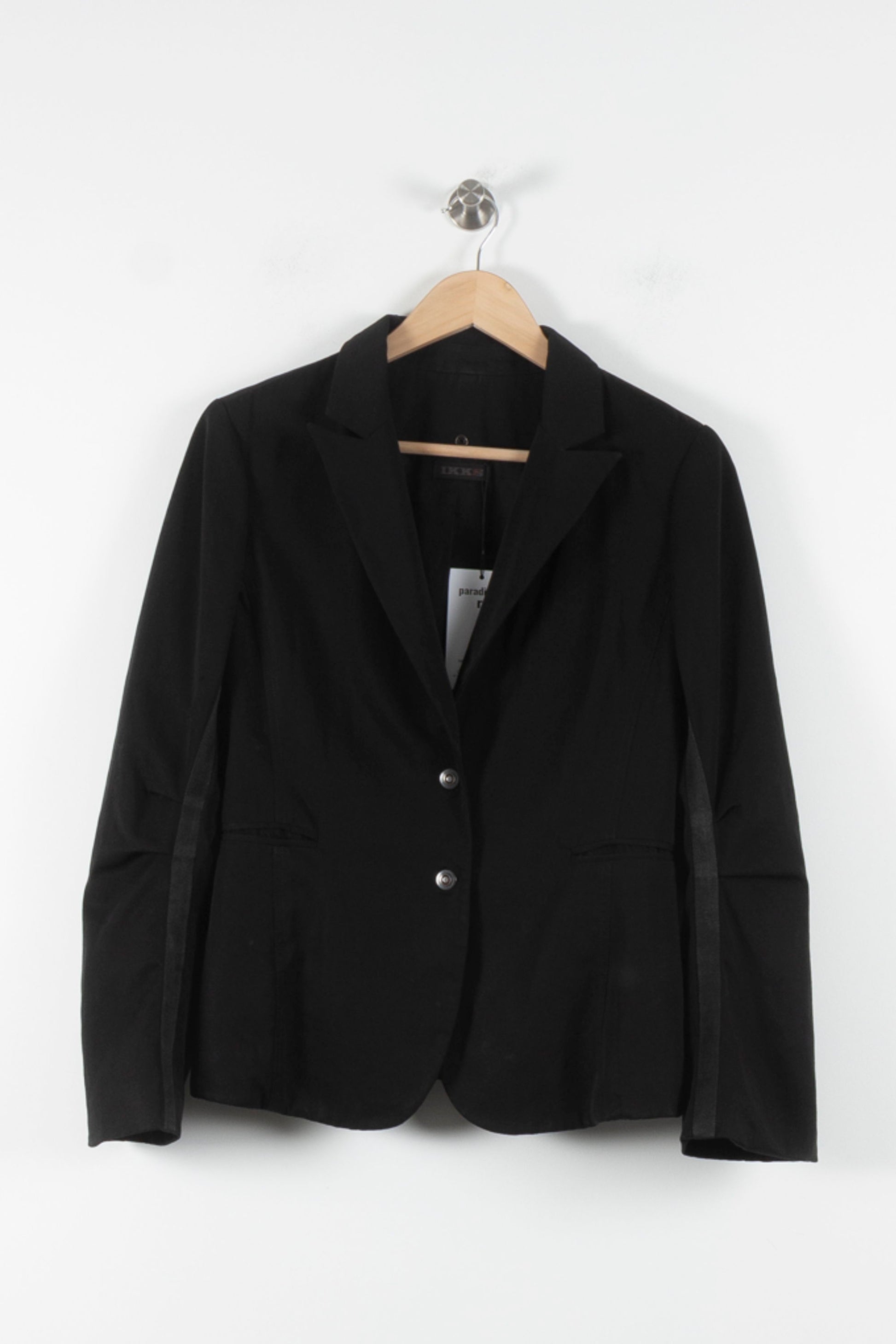 Veste noire IKKS taille M/38, coupe classique à deux boutons, parfaite pour la mi-saison. Réalisée en 100% laine avec une doublure 100% polyester, cette veste se distingue par la finesse de sa matière et ses finitions discrètes, offrant un tombé élégant et confortable. Idéale pour une réunion professionnelle ou une occasion chic nécessitant une allure soignée et intemporelle.