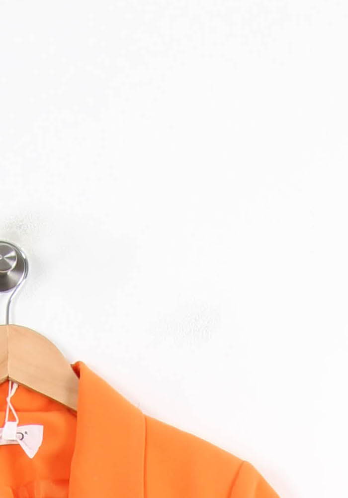 Veste orange Sud express taille M/38 – Élégante veste à manches longues, coupe droite, fermée par un bouton et dotée de poches passepoilées, idéale pour une allure chic et moderne. Sa matière lisse et structurée ainsi que la vivacité de son coloris orange éclatant confèrent à cette pièce un style unique et affirmé. Parfait pour rehausser une tenue professionnelle ou apporter une touche de couleur à une sortie en ville.