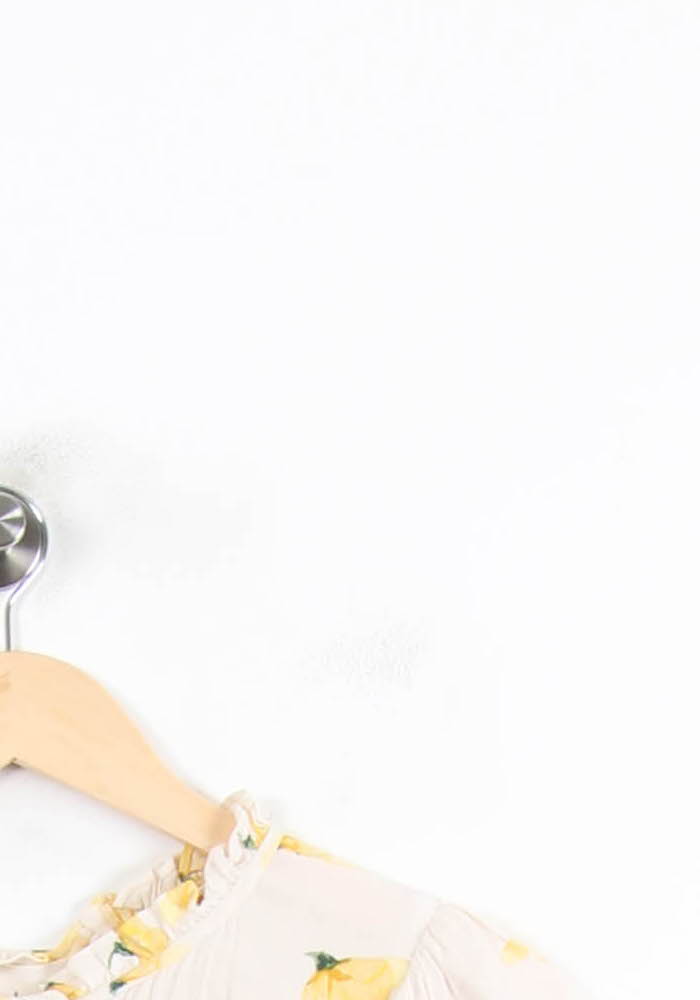 Top imprimé fleuri ba&sh blanc, taille S/36. Confectionné dans une matière légère, ce top se distingue par ses petites manches courtes évasées et son col légèrement volanté, agrémenté d’un discret bouton sur le devant. Les motifs floraux jaunes apportent une touche de fraîcheur et d’originalité à la pièce. Idéal pour un déjeuner estival ou une promenade en ville lors des beaux jours.