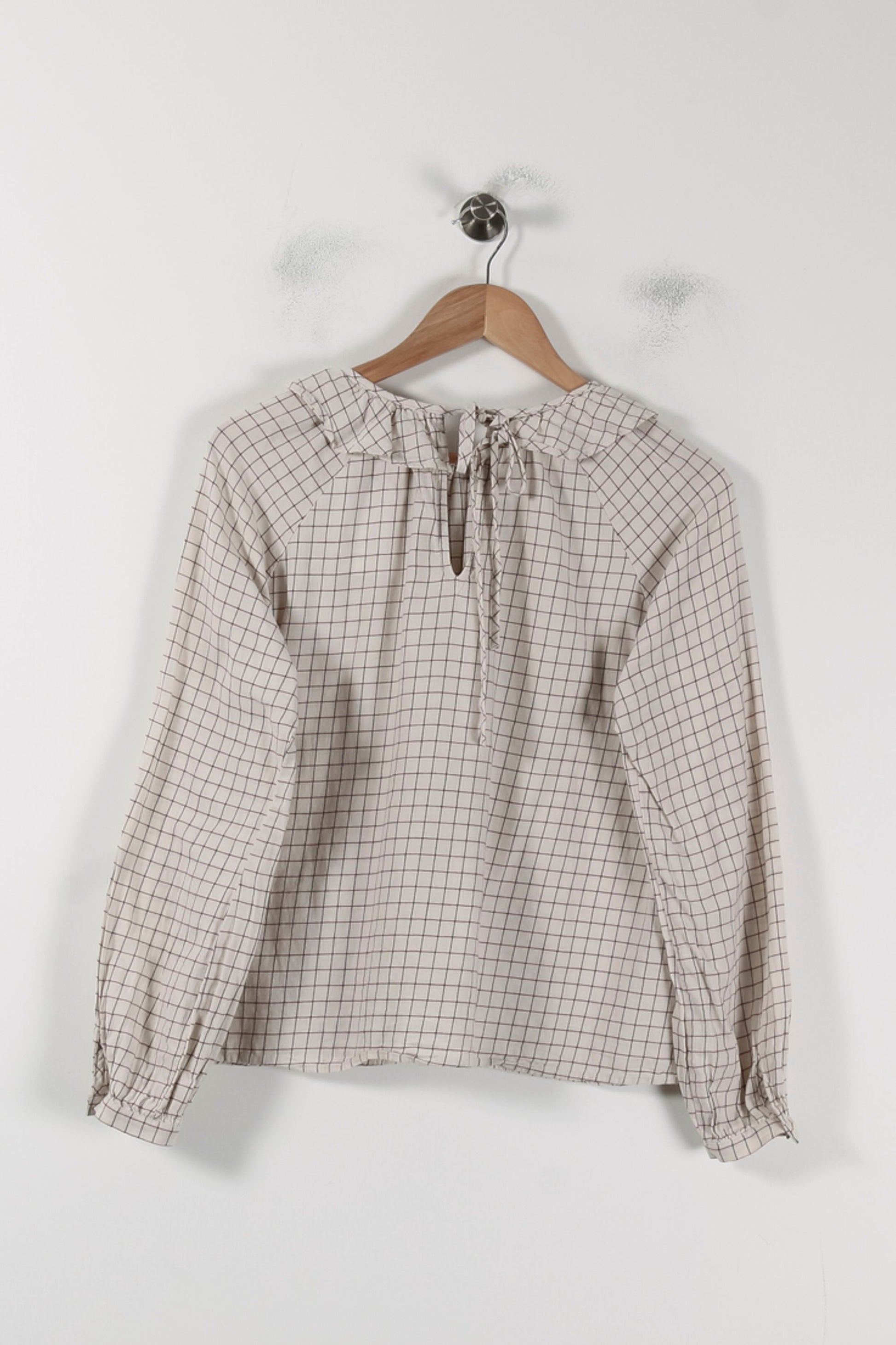 Blouse Sézane à carreaux blancs, taille M/38, élégante et intemporelle, parfaite pour sublimer le quotidien. Confectionnée en 100% coton, elle se distingue par son col légèrement volanté et ses manches longues à poignets boutonnés, apportant une touche raffinée et authentique à la silhouette. Idéale pour une journée au bureau ou un déjeuner entre amis, elle s'accorde facilement avec un jean ou une jupe.
