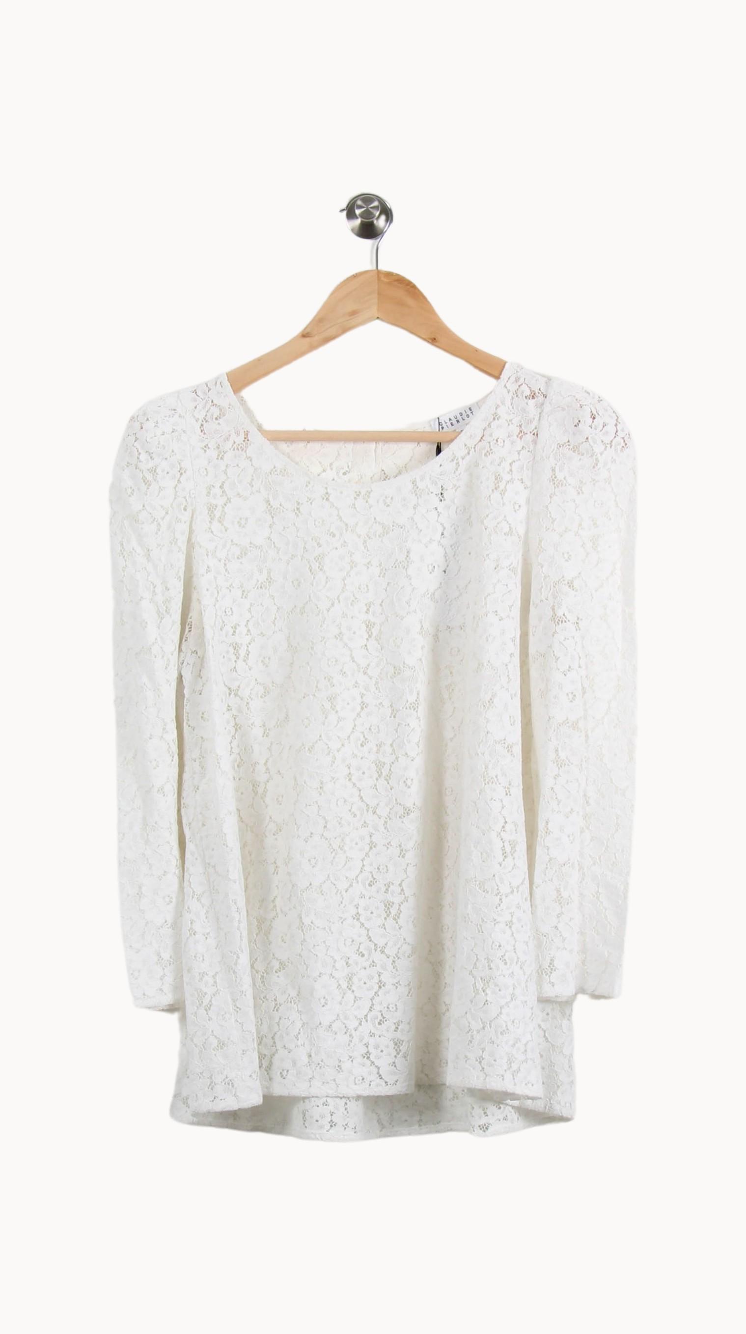 Top en dentelle blanche Claudie Pierlot, taille M/38, élégant et intemporel, parfait pour sublimer chaque garde-robe. Confectionné dans une délicate dentelle florale, ce top aux manches longues séduit par sa transparence subtile et son raffinement, offrant une allure sophistiquée et féminine. Idéal pour une occasion spéciale ou un dîner raffiné, il apporte une touche de chic à une tenue de soirée comme à un look de journée habillé.