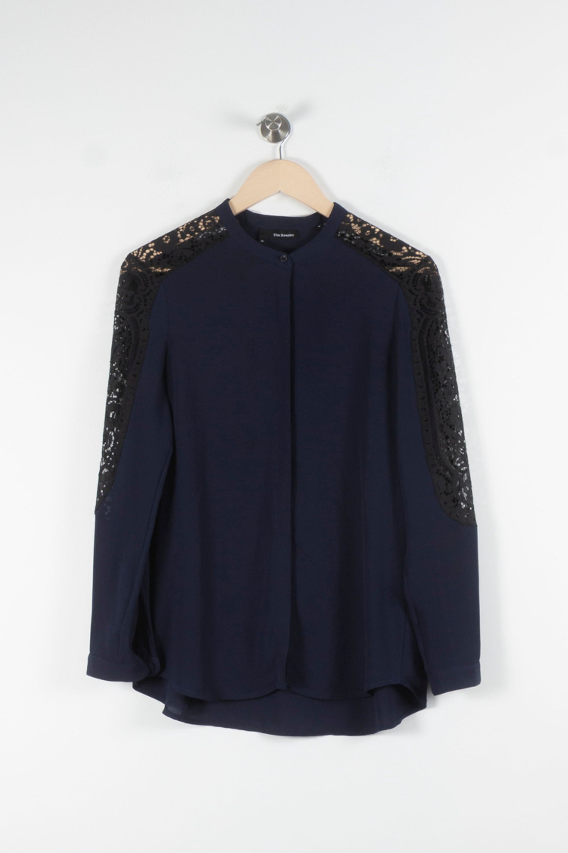 Blouse en dentelle bleu The Kooples, taille M/38, élégante et raffinée, idéale pour sublimer vos looks quotidiens. Confectionnée en tissu principal 100% polyester avec des empiècements en dentelle (90% coton, 10% polyamide) sur les épaules et le haut des manches, cette pièce se distingue par ses jeux de transparence sophistiqués et sa touche contemporaine. Parfaite pour une réunion professionnelle ou une soirée chic, elle apportera une note de modernité à votre silhouette.