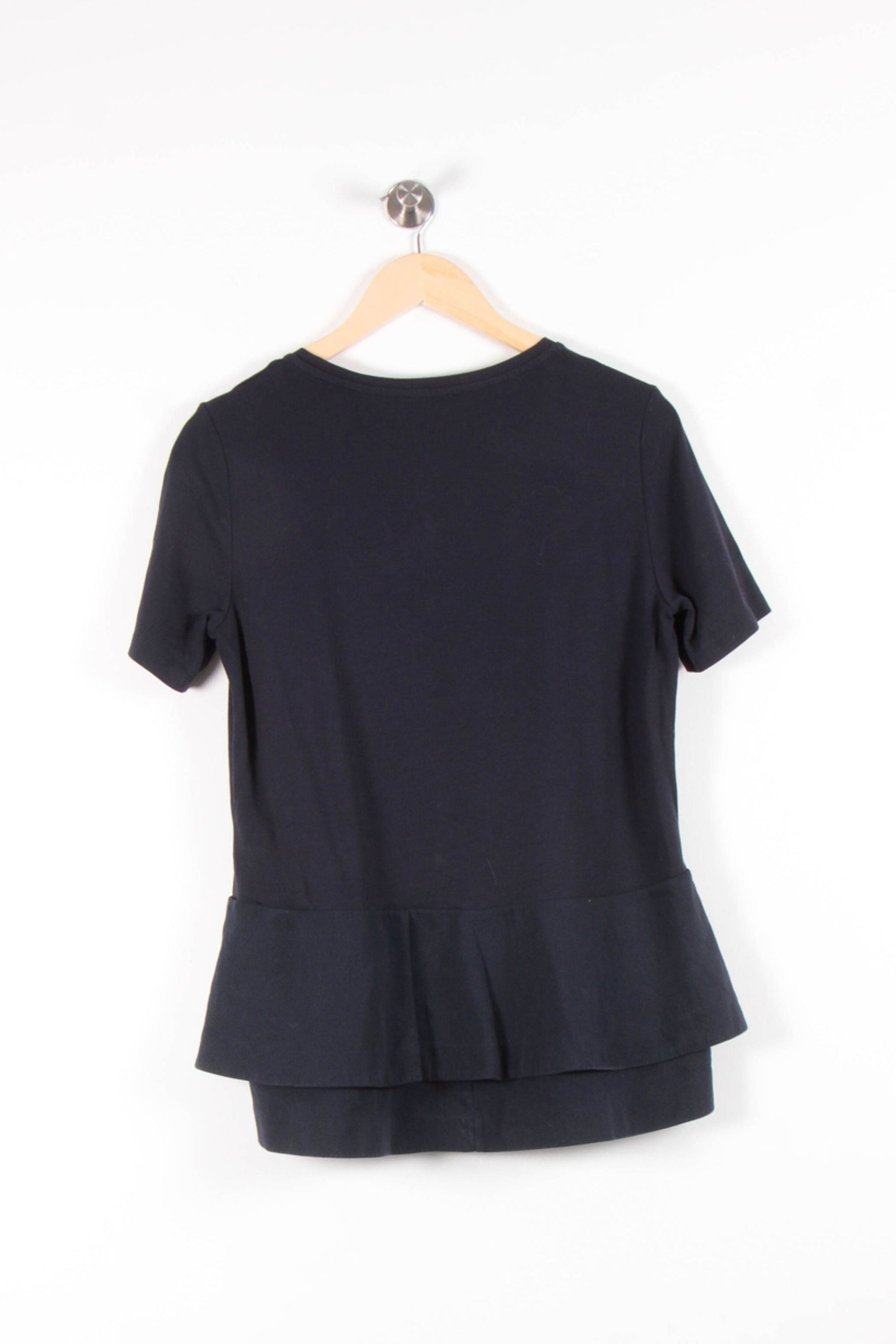 Top bleu à volants COS, taille M/38, parfait pour rehausser une silhouette avec élégance. Confectionné dans une matière douce et légèrement structurée, ce top se distingue par sa coupe droite, ses manches courtes et son volant délicat à la base, apportant une touche sophistiquée et moderne à l’ensemble. Idéal pour une journée au bureau ou un déjeuner en ville, il s’associe aisément avec un pantalon ajusté ou une jupe minimaliste.