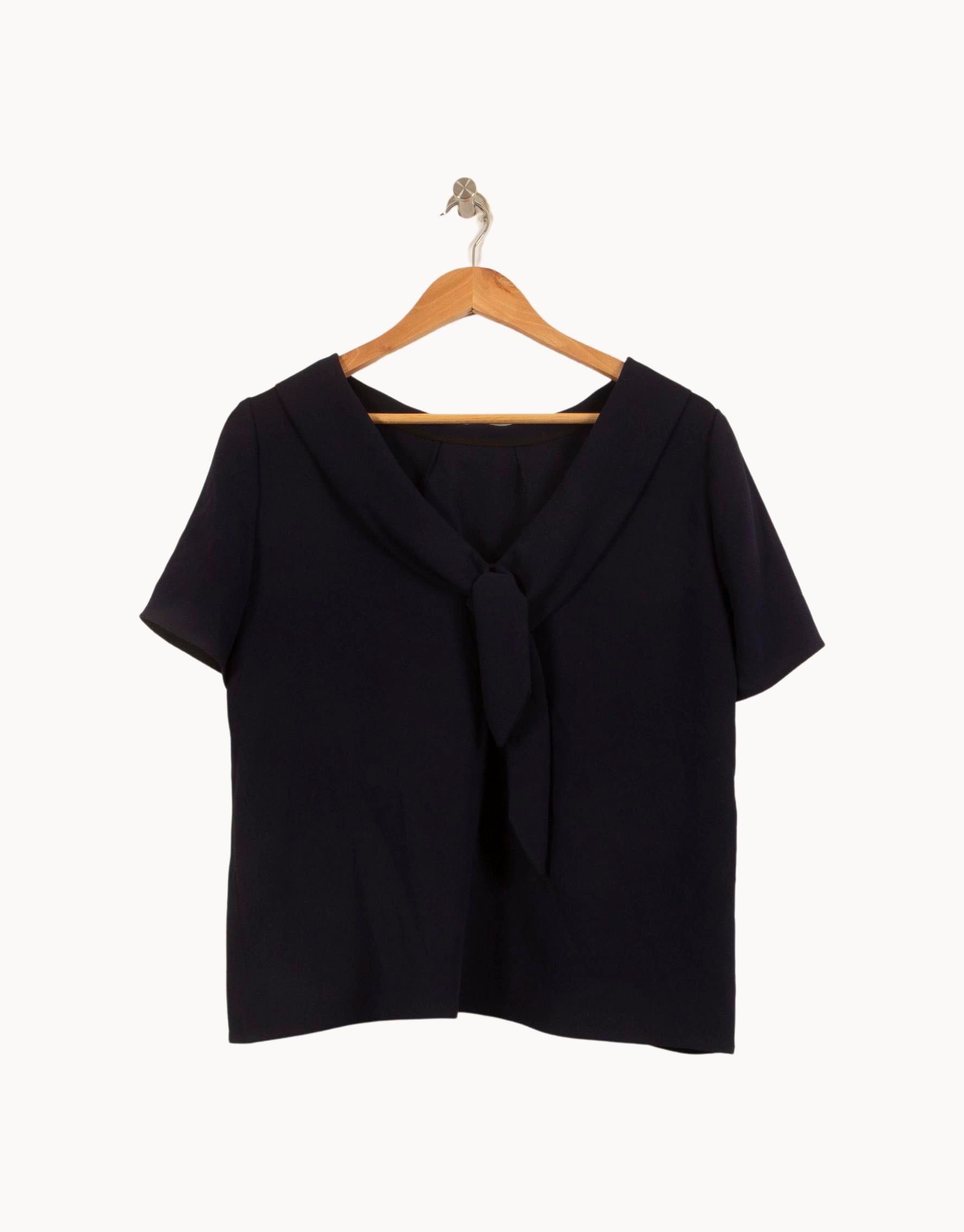 Top bleu à manches courtes Tara Jarmon, taille L/40, élégant et intemporel, parfait pour sublimer une silhouette. Confectionné dans une matière fluide, ce haut séduit par sa coupe droite, son col délicatement arrondi et ses finitions soignées, apportant une touche d’élégance sobre à l’ensemble. Idéal pour une réunion professionnelle ou une sortie en ville, il s’intègre aisément dans une garde-robe raffinée.