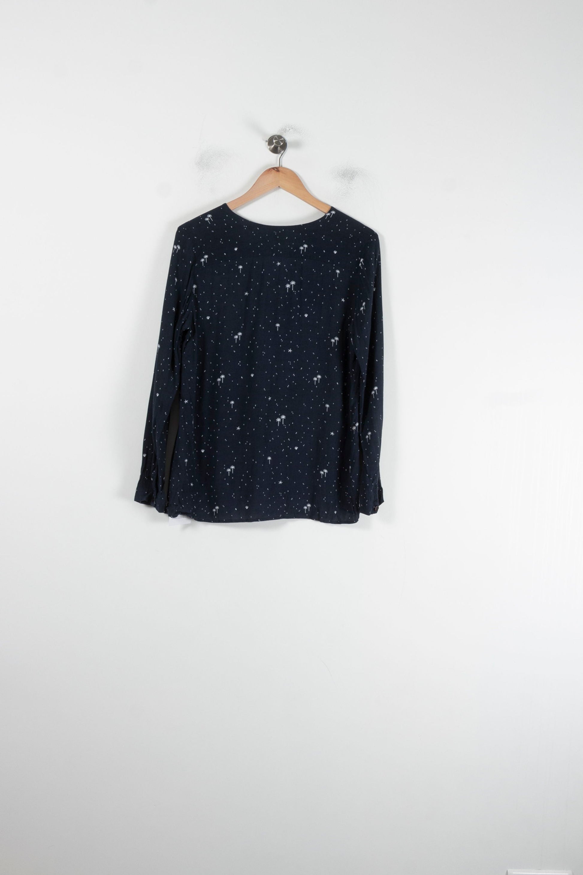 Top bleu à motifs étoilés Des Petits Hauts taille M/38, une pièce élégante à la coupe fluide et féminine. Confectionné en 100% viscose, ce top se distingue par sa matière légère et douce ainsi que par ses boutons délicats à l’avant, sublimés par ses motifs de petites étoiles blanches qui ajoutent une touche de poésie. Parfait pour être porté lors d’un déjeuner entre amis ou au bureau pour une allure chic et décontractée.