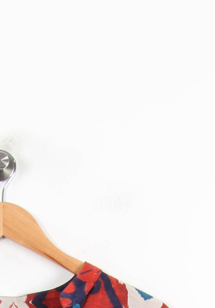 Blouse multicolore à motifs La Fée Maraboutée, taille L/40, au design élégant et original. Confectionnée dans une matière légère et fluide, cette blouse présente un imprimé floral abstrait dans des tons de bleu, rouge et blanc, avec un col en V discret et une coupe légèrement asymétrique au bas, qui en fait une pièce unique pleine de caractère. Parfaite pour une journée au bureau ou une sortie décontractée entre amis, elle apportera une touche de sophistication et de couleur à votre tenue.