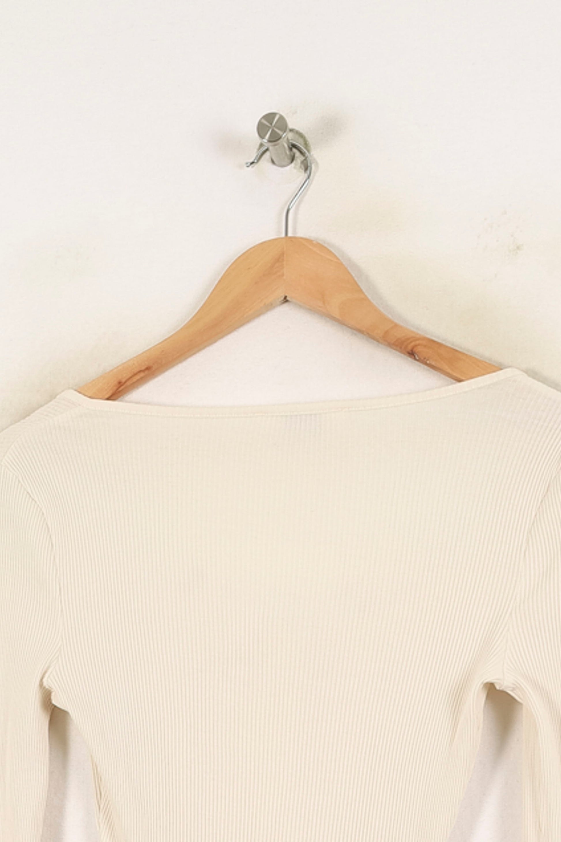Body côtelé blanc Balzac Paris taille M/38, à manches longues et encolure ronde profonde, orné de boutons sur le devant. Confectionné dans une matière à fines côtes, il se distingue par ses boutons délicats et son aspect ajusté, apportant élégance et modernité à votre tenue. Ce modèle s’accorde parfaitement avec un jean taille haute pour une sortie citadine ou une journée de bureau.