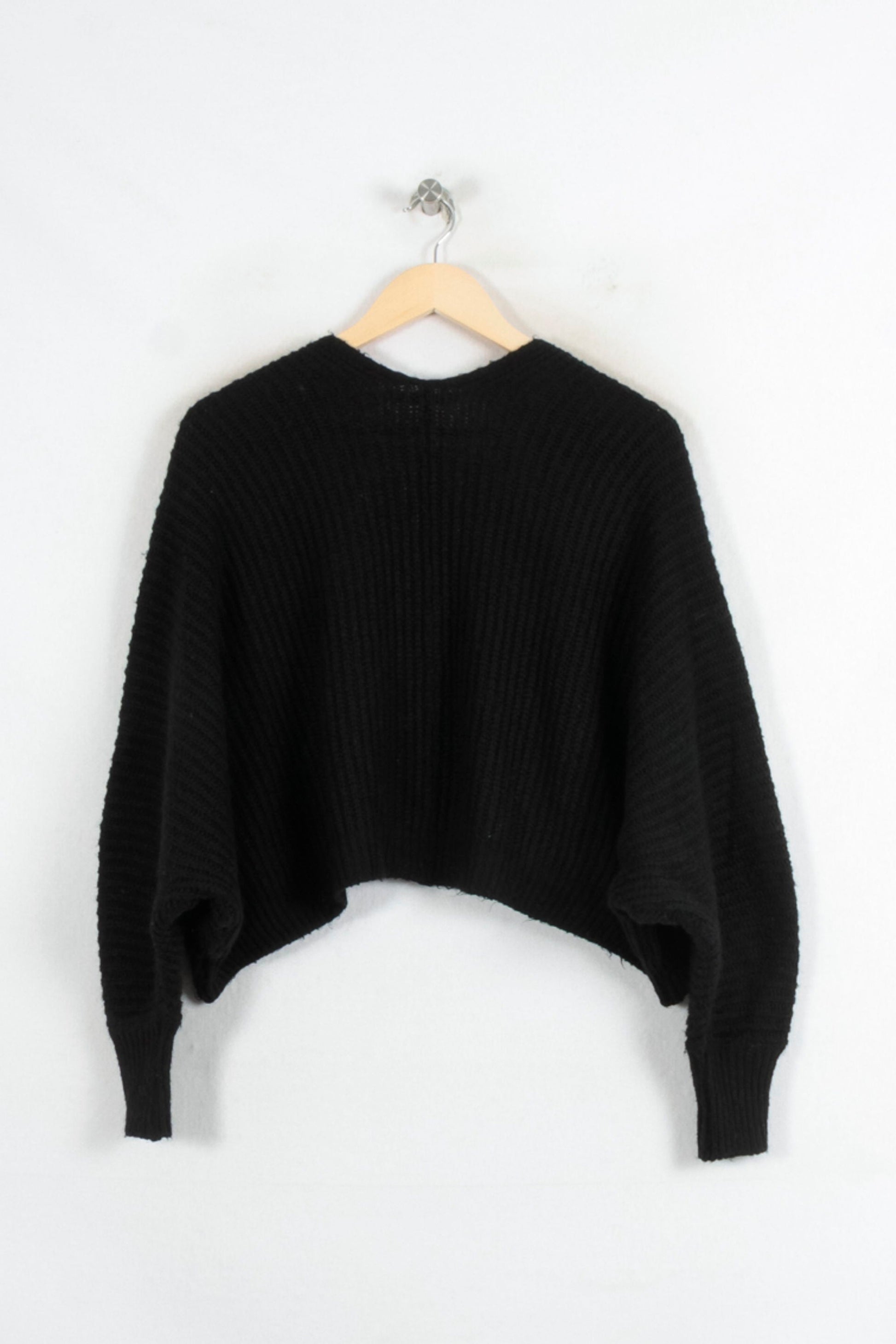 Cardigan noir coupe courte La Fée Maraboutée, taille L/40, parfait pour compléter une garde-robe élégante. Sa maille épaisse à côtes apporte à la fois modernité et confort, tandis que ses manches longues et son large col ouvert soulignent une allure décontractée et raffinée. Idéal pour réchauffer une robe ou accompagner un pantalon taille haute lors d’une sortie en soirée ou d’une journée au bureau.