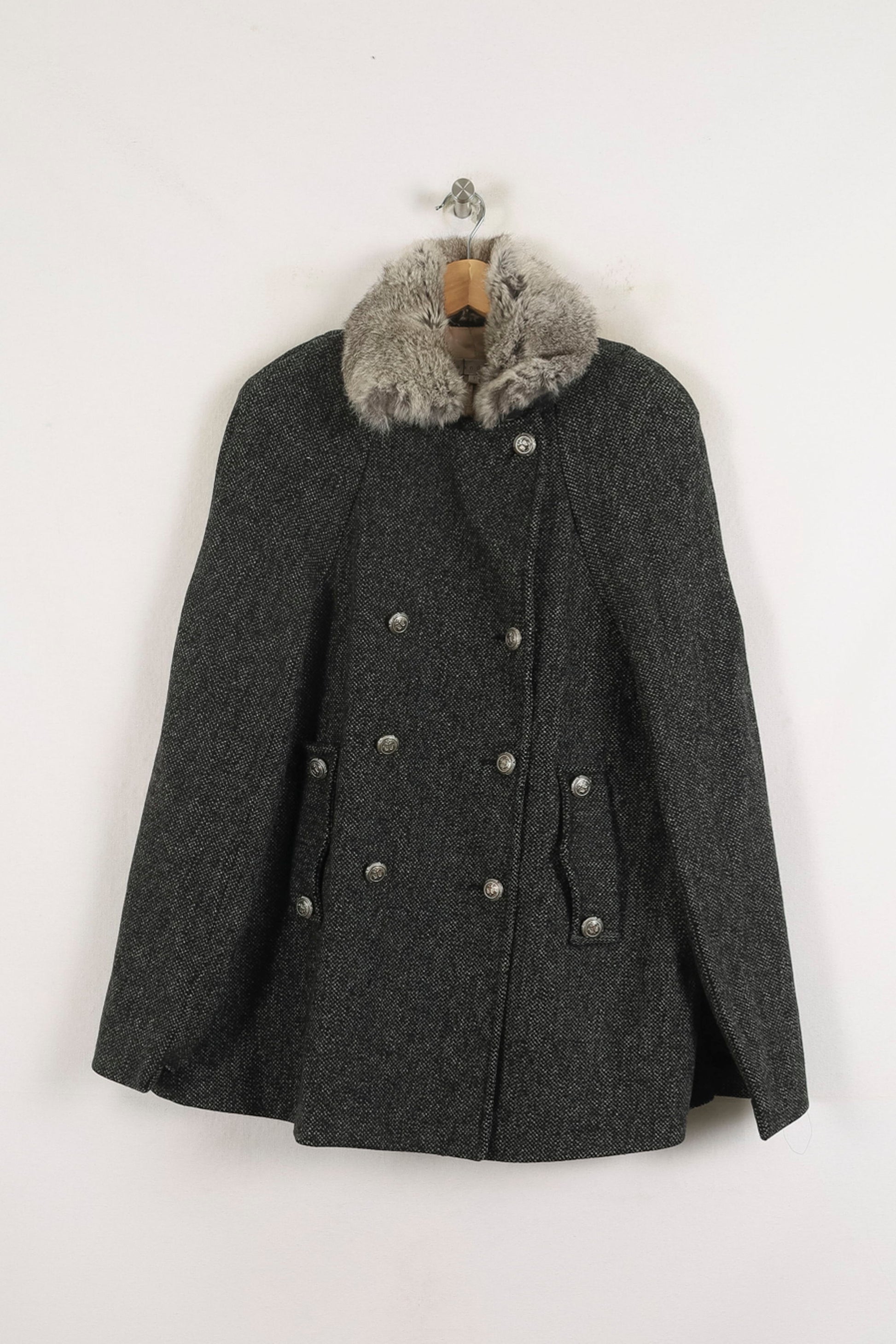 Cape Grise et Fourrure Grise - Taille S/36 de la marque Sandro