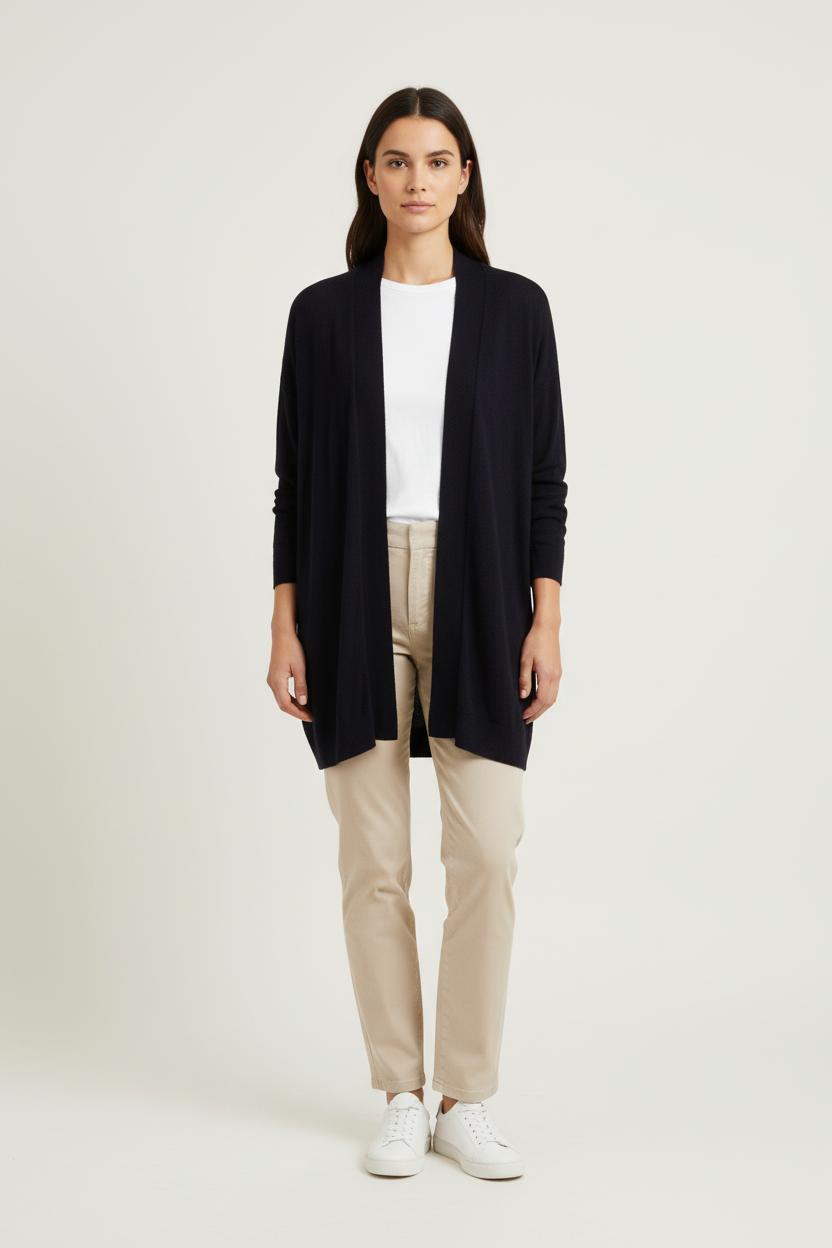 Cardigan bleu Maison 123, taille L/40, à la coupe fluide et aux manches longues, idéal pour compléter une tenue élégante et sobre. Sa matière douce et légère assure un excellent confort, tandis que la simplicité de ses finitions et l’absence de fermeture confèrent une allure moderne et épurée, caractéristique du savoir-faire de la marque Maison 123. Ce cardigan est parfait pour une journée au bureau ou une sortie décontractée, apportant une touche raffinée à vos tenues quotidiennes.