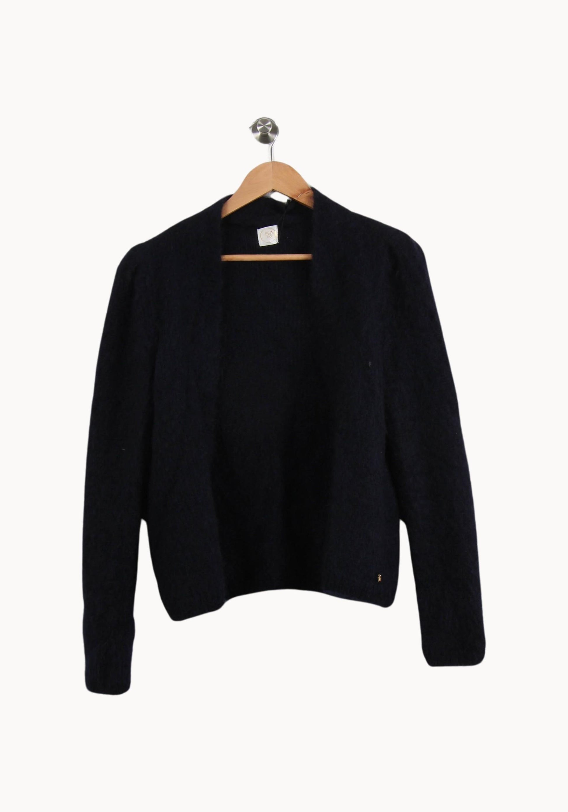 Cardigan bleu Des Petits Hauts, taille M/38, conçu pour allier simplicité et élégance. Sa matière douce et duveteuse, associée à une coupe droite sans fermeture, apporte une touche de raffinement subtil, tandis qu’un petit détail doré signature accentue l’ensemble. Idéal pour réchauffer une tenue professionnelle ou compléter un look casual lors d’une sortie entre amis.