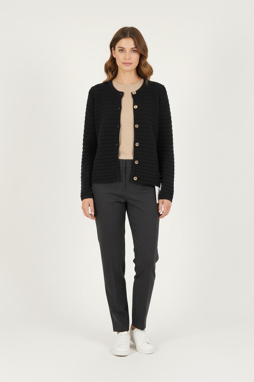 Cardigan bleu Caroll taille S/36, pièce élégante à la coupe classique, idéale pour compléter votre garde-robe. Confectionné dans une maille texturée, ce cardigan se distingue par ses boutons dorés et ses finitions soignées, apportant une touche de raffinement et de simplicité. Parfait à porter lors d’une réunion professionnelle ou pour une sortie décontractée en ville.