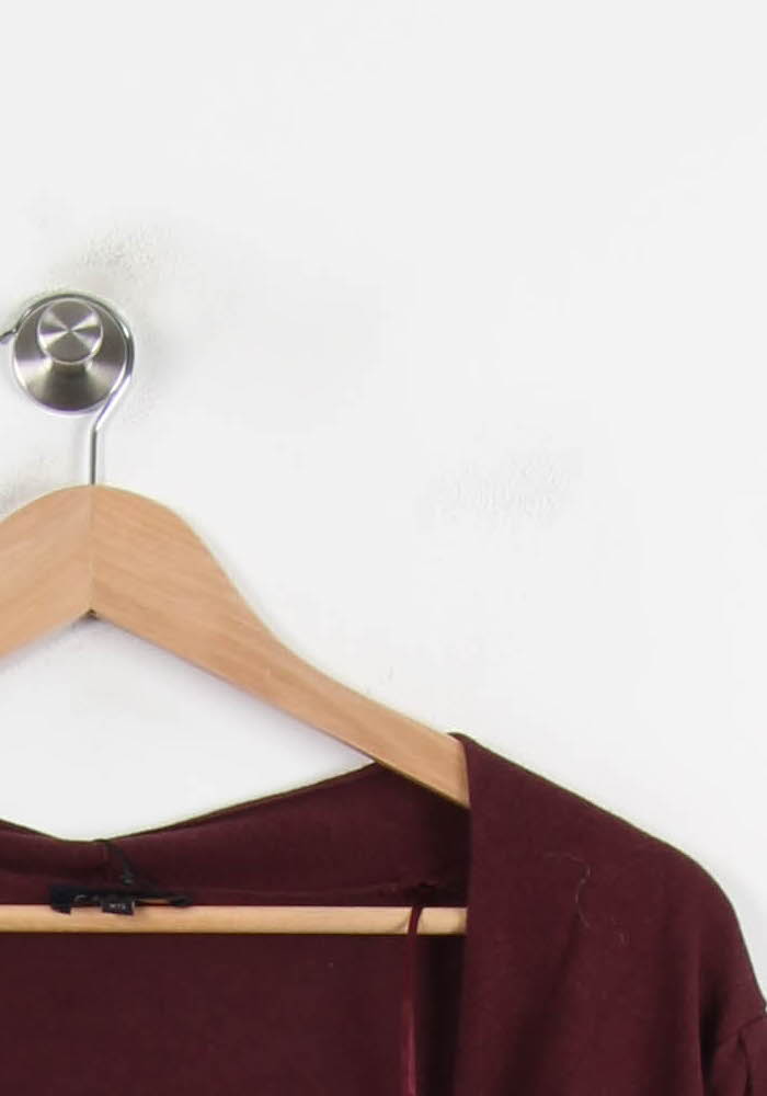 Cardigan bordeaux Caroll taille XS/34, un modèle élégant et intemporel de la marque Caroll, idéal pour compléter une garde-robe raffinée. Confectionné dans une matière douce, ce cardigan présente une coupe classique ouverte sans boutons ni fermetures, des manches longues et une finition fluide, pour un confort optimal et un tombé harmonieux. Parfait pour une journée au bureau ou pour sublimer un dîner en ville lors des soirées plus fraîches.