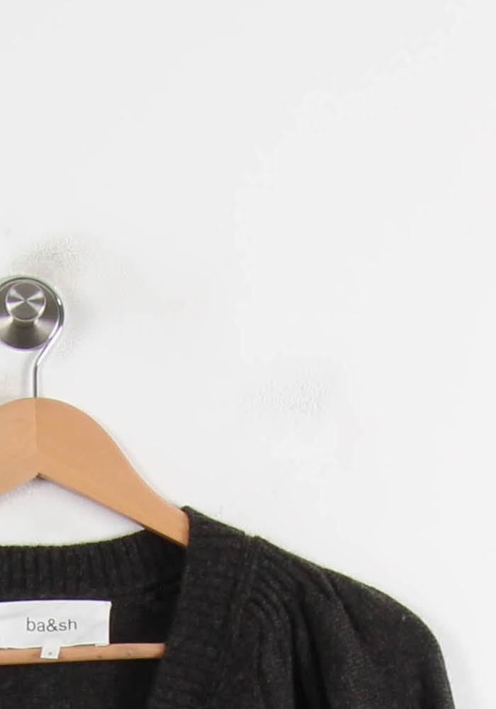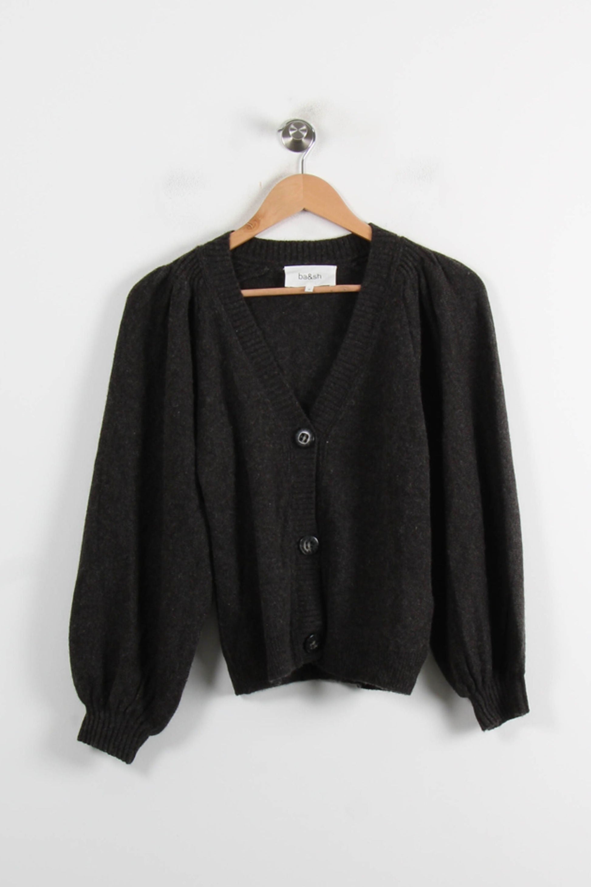 Cardigan gris ba&sh, taille XS/34, à la coupe classique et élégante, idéal pour sublimer vos tenues de saison. Confectionné dans une maille douce, ce modèle se distingue par ses manches légèrement bouffantes et ses finitions côtelées qui ajoutent une touche de modernité et de raffinement. À porter lors d’un déjeuner en ville ou durant une journée de travail pour une allure féminine et confortable.