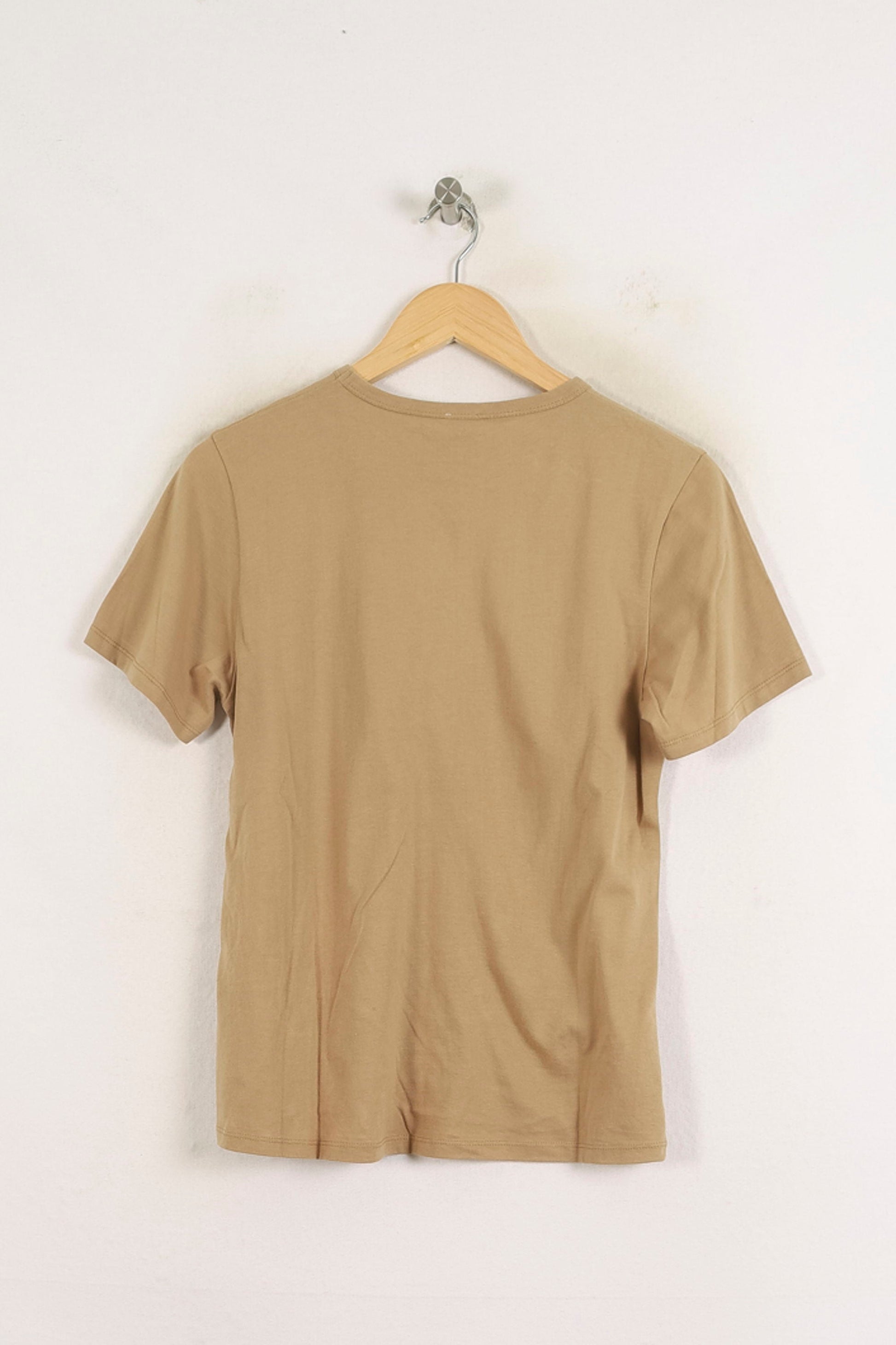 T-shirt beige à manches courtes Ines de la Fressange Paris, taille S/36, offrant une allure épurée et élégante. Confectionné dans une matière douce au toucher, il se distingue par un motif discret apposé sur la poitrine, ajoutant une touche raffinée et singulière à un basique intemporel. Idéal pour une journée décontractée en ville ou un rendez-vous convivial entre amis.