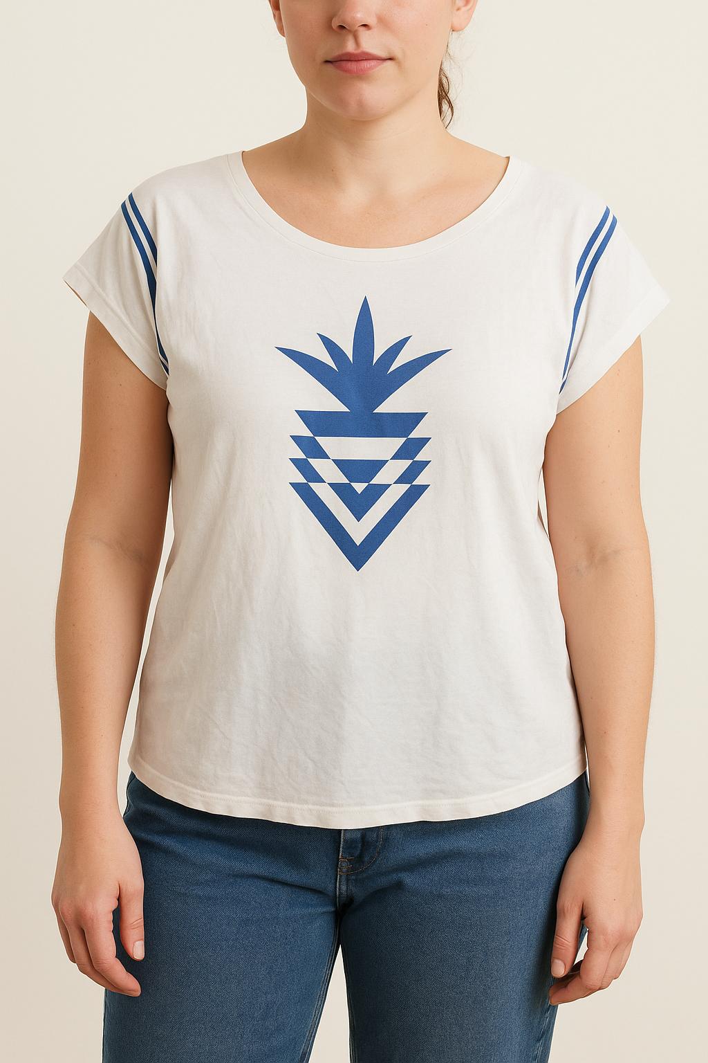 T-shirt blanc Claudie Pierlot taille L/40, orné d’un imprimé graphique bleu sur le devant et de bandes bleu marine sur les épaules, parfait pour une allure casual chic. Confectionné dans une matière douce et légère, ce top séduit par sa coupe fluide, ses manches courtes et ses détails géométriques uniques qui soulignent son originalité. Idéal pour une sortie décontractée en ville ou un week-end estival entre amis.