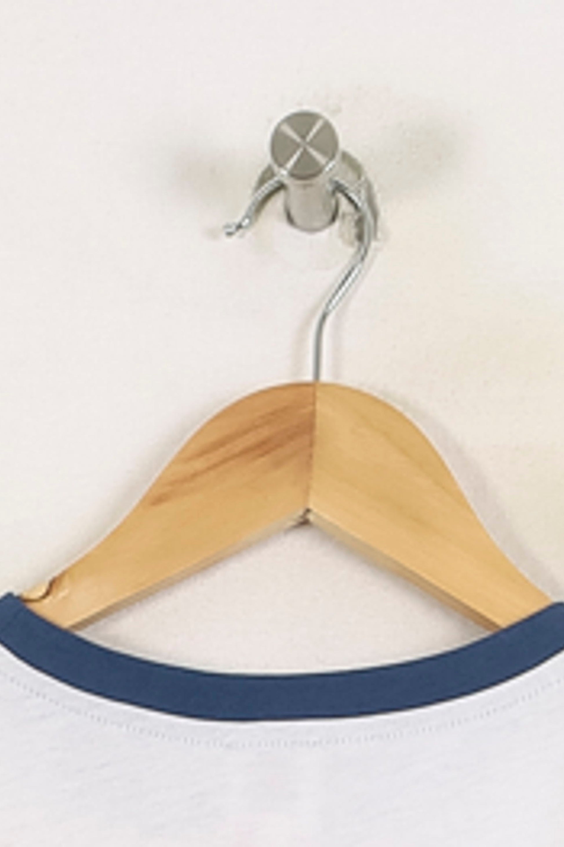 T-shirt blanc à col rond contrasté Ines de la Fressange Paris, taille S/36, de la catégorie Tops. Ce modèle se distingue par un col arrondi bleu marine et une broderie discrète sur la poitrine, réalisés dans une maille douce et légère, offrant un confort optimal tout en affirmant une touche moderne et raffinée. Idéal pour une journée décontractée ou pour sublimer un look casual chic lors d'une sortie en ville.