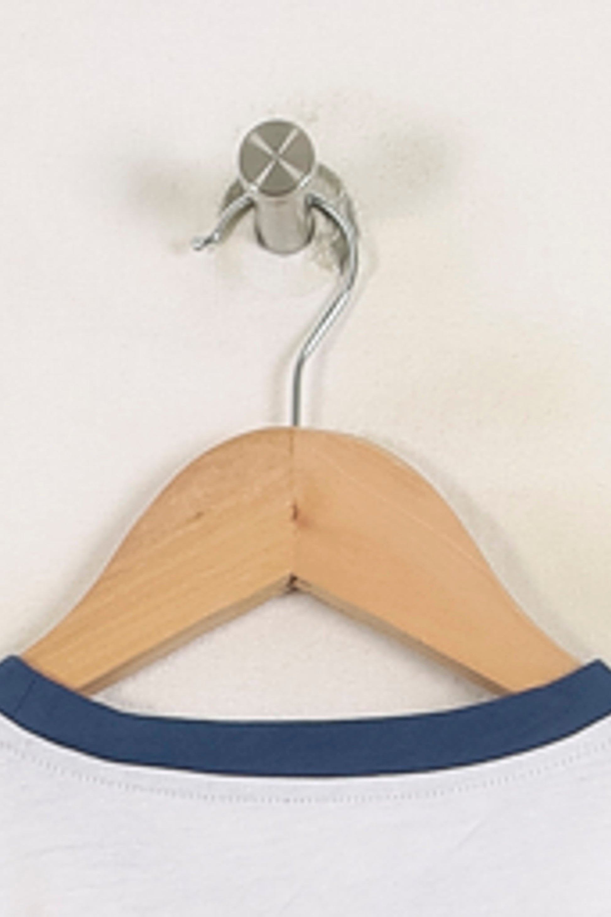 Top blanc Ines de la Fressange Paris, taille S/36, avec col rond contrasté bleu marine. Confectionné dans une matière souple à l’aspect doux, ce top se distingue par son col coloré et un petit motif brodé sur la poitrine, apportant une touche raffinée et singulière. Idéal pour une tenue décontractée et élégante lors d'un après-midi entre amis ou une balade en ville.