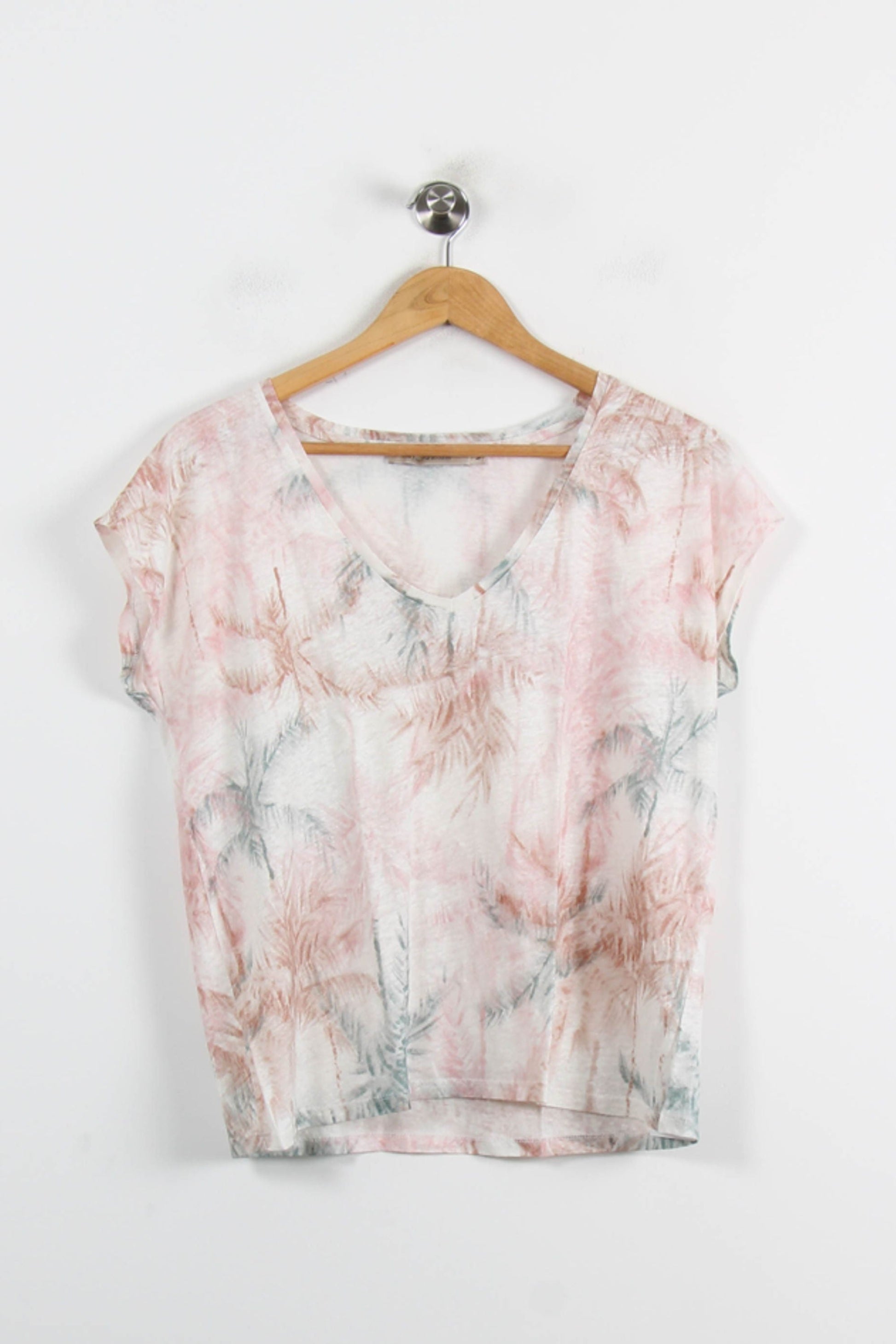Top multicolore La Fée Maraboutée, taille M/38 : ce haut léger se distingue par son imprimé délicat et ses nuances douces de rose, beige et bleu, parfait pour une allure féminine et moderne. Confectionné dans une matière fluide et agréable, il présente une coupe droite à manches courtes et un col en V, mettant en valeur un motif estival subtil qui apporte une note d'originalité. Idéal pour une journée ensoleillée ou une sortie décontractée, ce top se prête parfaitement à un look chic et confortable.