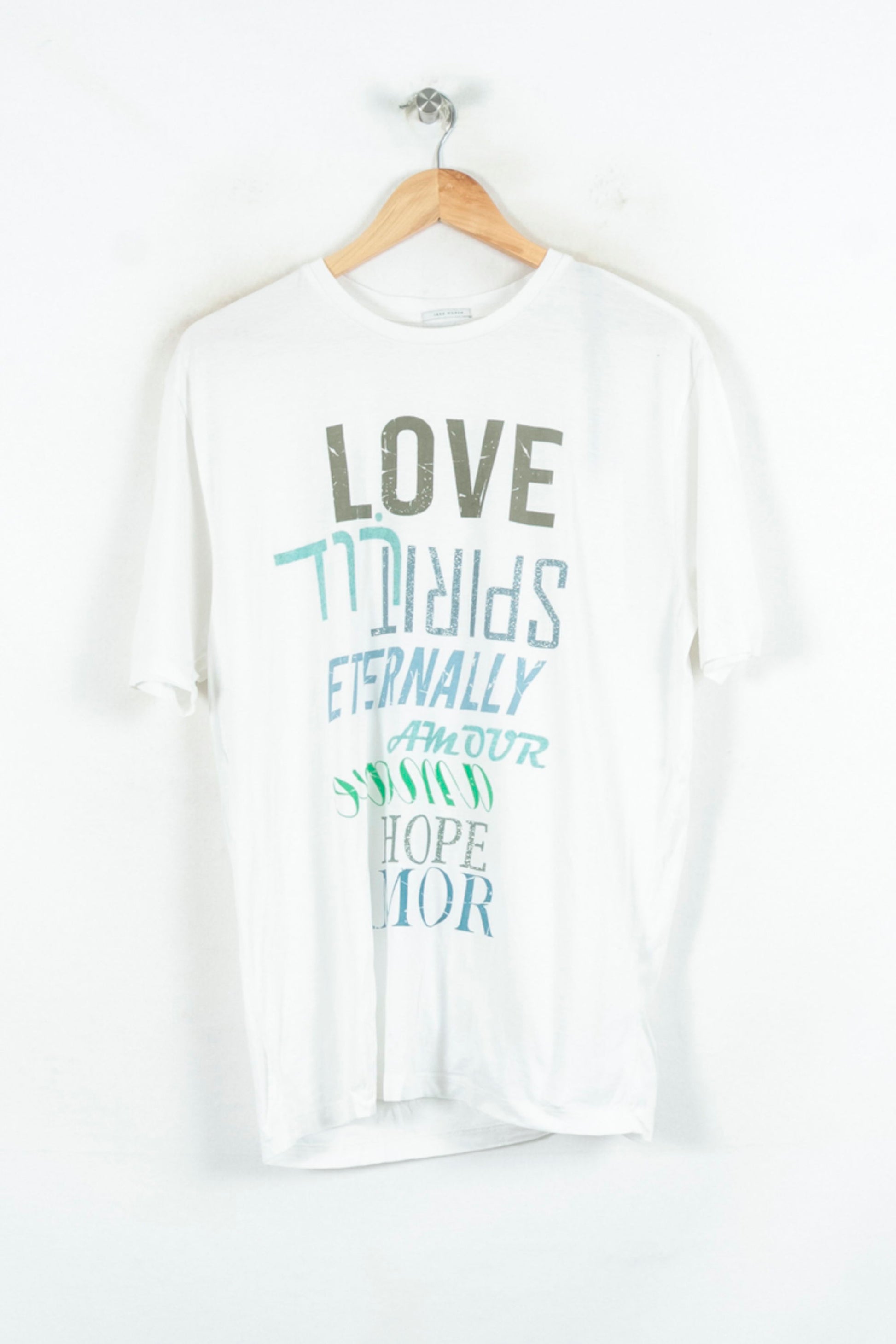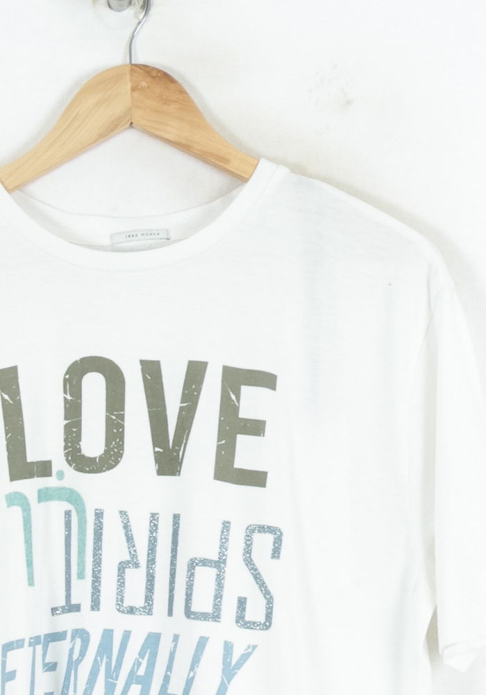 T-shirt blanc IKKS taille S/36 avec inscription multilingue colorée sur le devant, idéal pour apporter une touche dynamique à votre garde-robe. Confectionné dans une matière fluide et légère, ce top se distingue par ses messages positifs imprimés dans différentes typographies, reflétant une démarche créative et contemporaine propre à la marque IKKS. Parfait pour une sortie décontractée, une balade en ville ou un week-end entre amis.