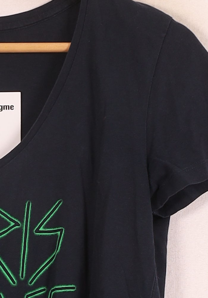 T-shirt bleu "Paris Palace 80's" IKKS, taille S/36, un top à la fois tendance et affirmé par la marque reconnue. Conçu dans une matière douce et confortable, ce t-shirt se distingue par son inscription stylisée en vert fluo sur le devant, ajoutant une touche rétro et contemporaine. Idéal pour une sortie décontractée entre amis ou pour apporter une note graphique à une tenue casual chic.