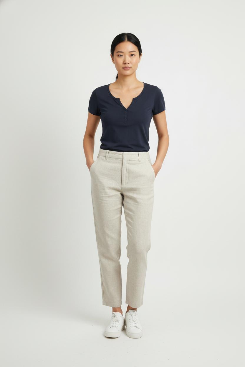 Top bleu à manches courtes Bérénice, taille S/36, un basique intemporel à l’encolure en V orné de deux boutons. Confectionné dans une matière fluide et légère, il se distingue par sa coupe ajustée et ses finitions épurées, apportant une touche de raffinement discret. Idéal pour une journée décontractée ou une sortie entre amis, il s’accorde facilement avec tout votre dressing.