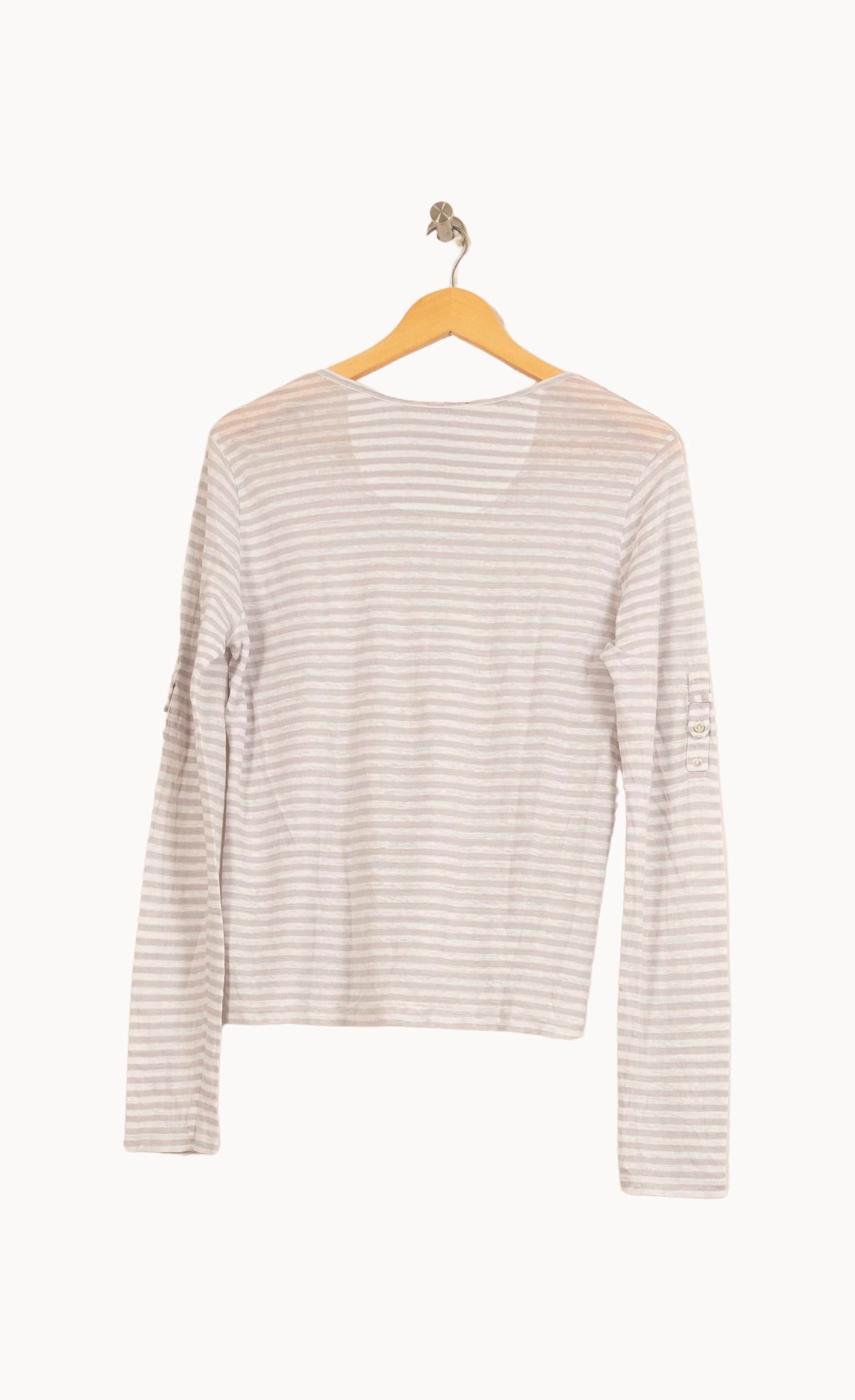 Tee-shirt Manches Longues Blanc et Gris - Taille L/40