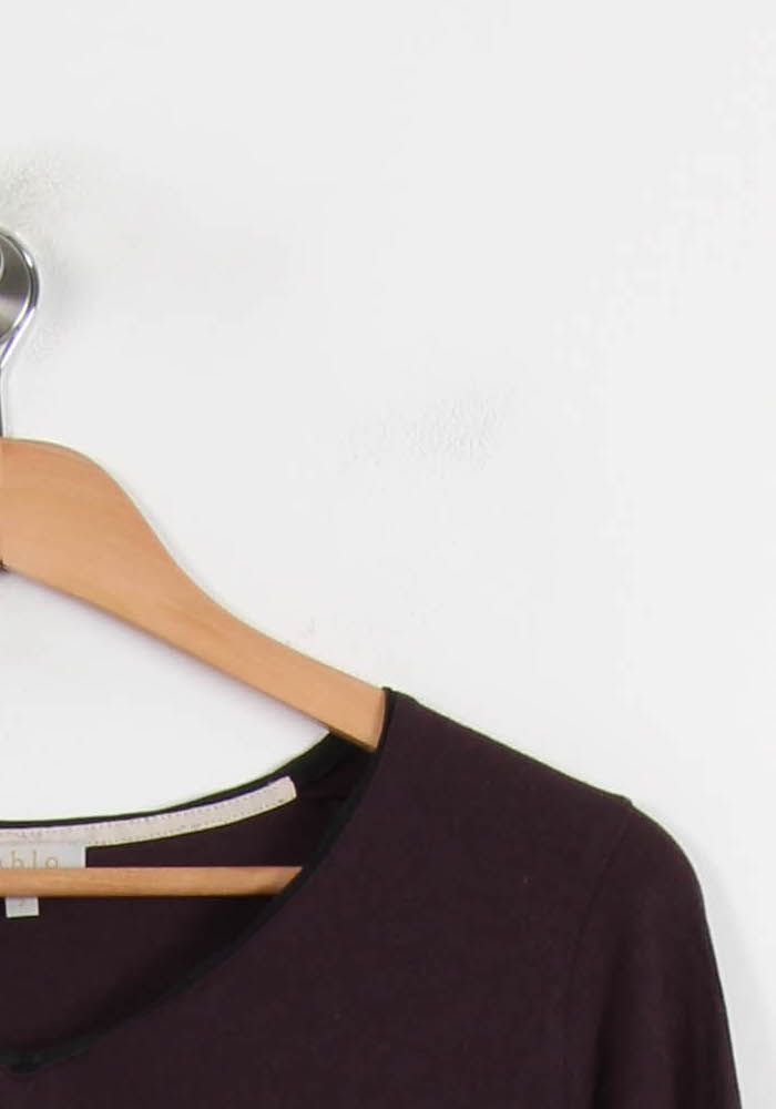Top bordeaux à manches longues Pablo, taille M/38, élégant et intemporel, parfait pour sublimer votre garde-robe. Ce modèle présente une encolure en V, des coudières contrastantes et une coupe légèrement asymétrique, mettant en valeur la qualité de la matière et les finitions soignées de la marque. Idéal pour une journée de bureau accompagnée d’un pantalon élégant ou pour une sortie décontractée en ville.