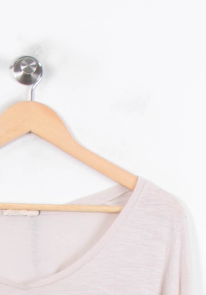 Top manches longues gris American Vintage, taille S/36, coupe sobre et élégante. Confectionné dans une matière douce, ce top présente un col rond profond et une finition discrète au bas, offrant un tombé naturel qui met en valeur la simplicité du design. Idéal pour une journée décontractée ou une sortie entre amis, il s’associe facilement avec un jean ou une jupe.