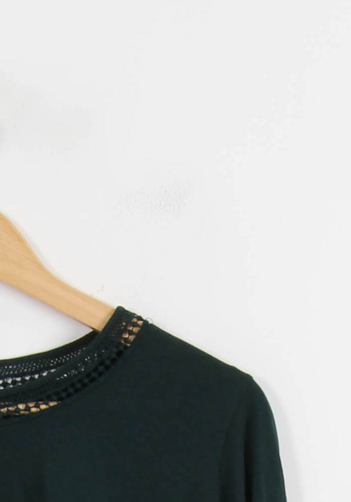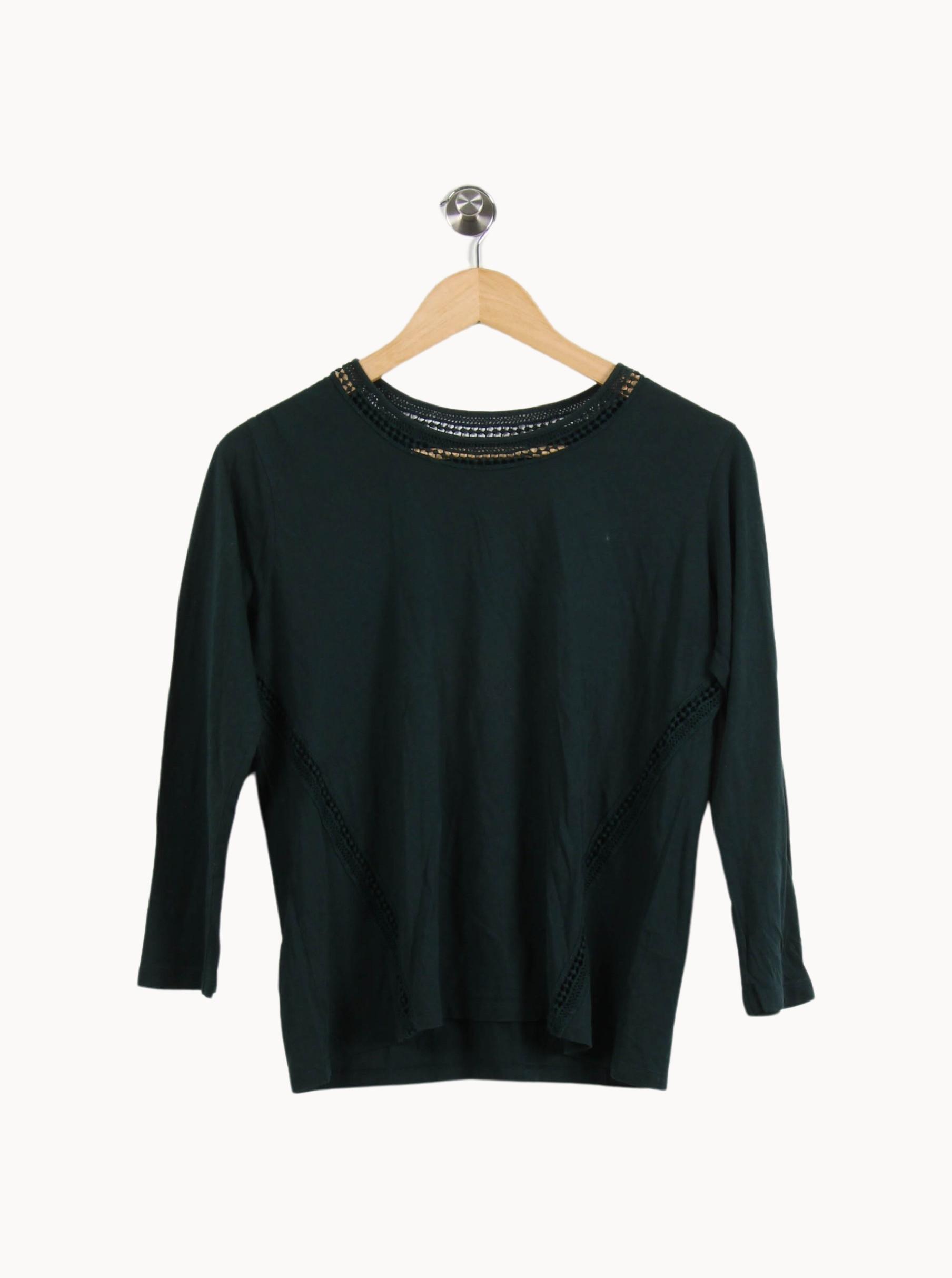 Top vert IKKS taille L/40, à manches longues, idéal pour une silhouette élégante et décontractée. Confectionné dans une matière fluide, ce haut se distingue par ses détails ajourés discrets au niveau du col et des côtés, apportant une touche originale et raffinée. Parfait pour une journée au bureau ou une sortie entre amis, il se porte aisément avec un jean ou une jupe pour une allure contemporaine.